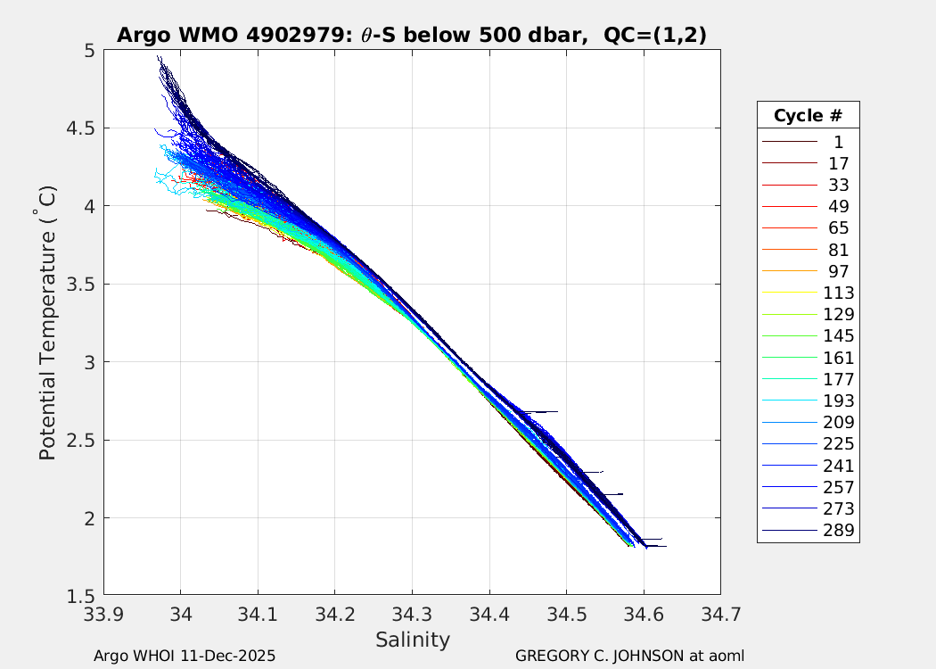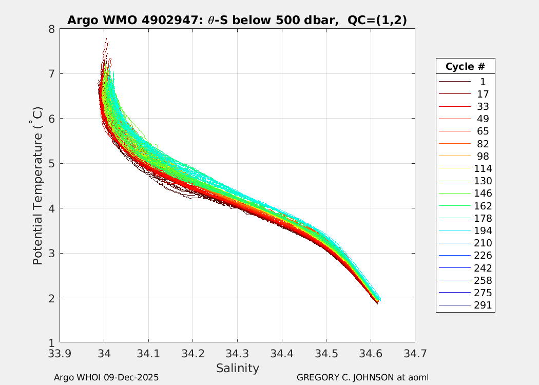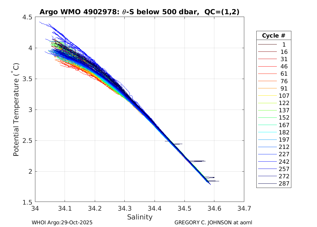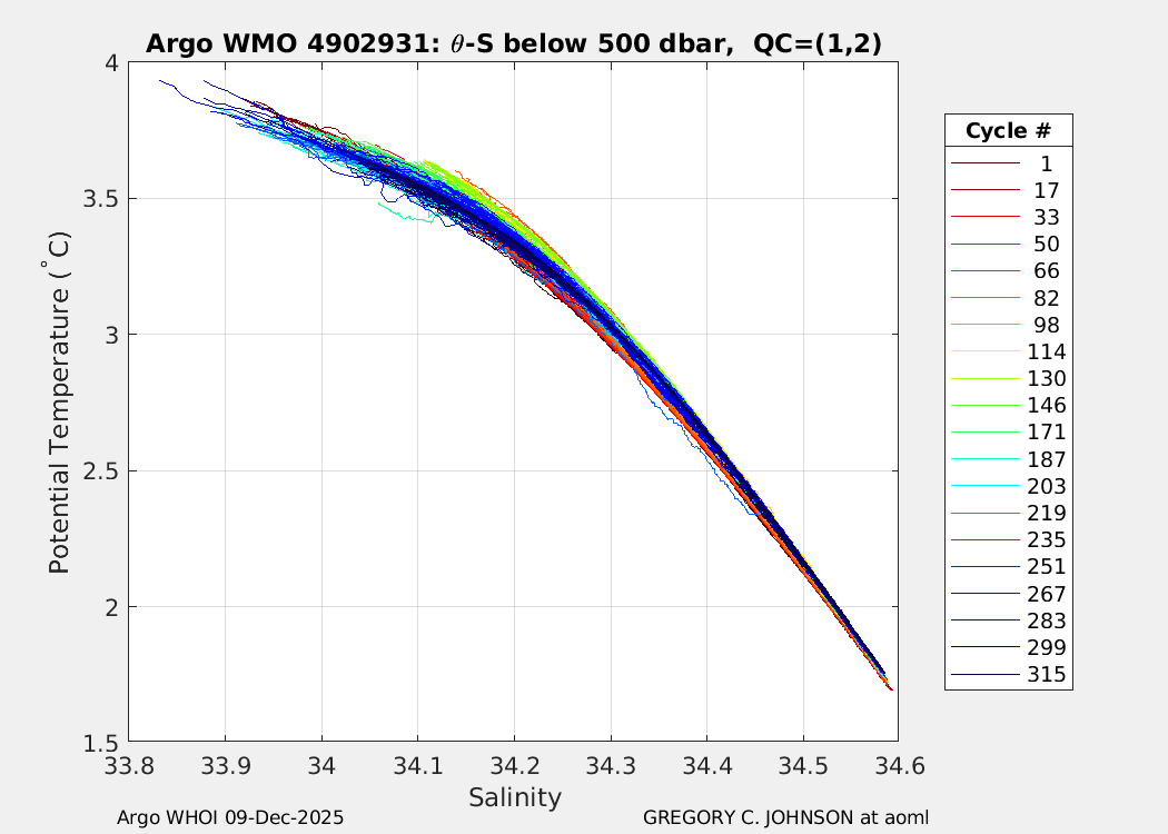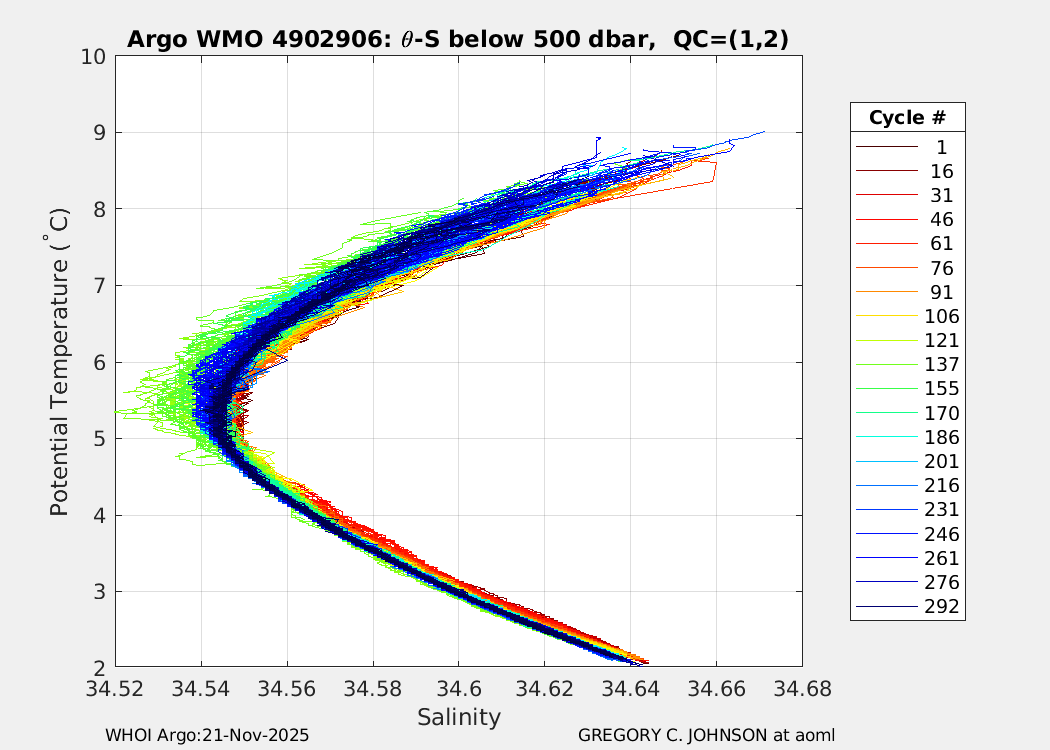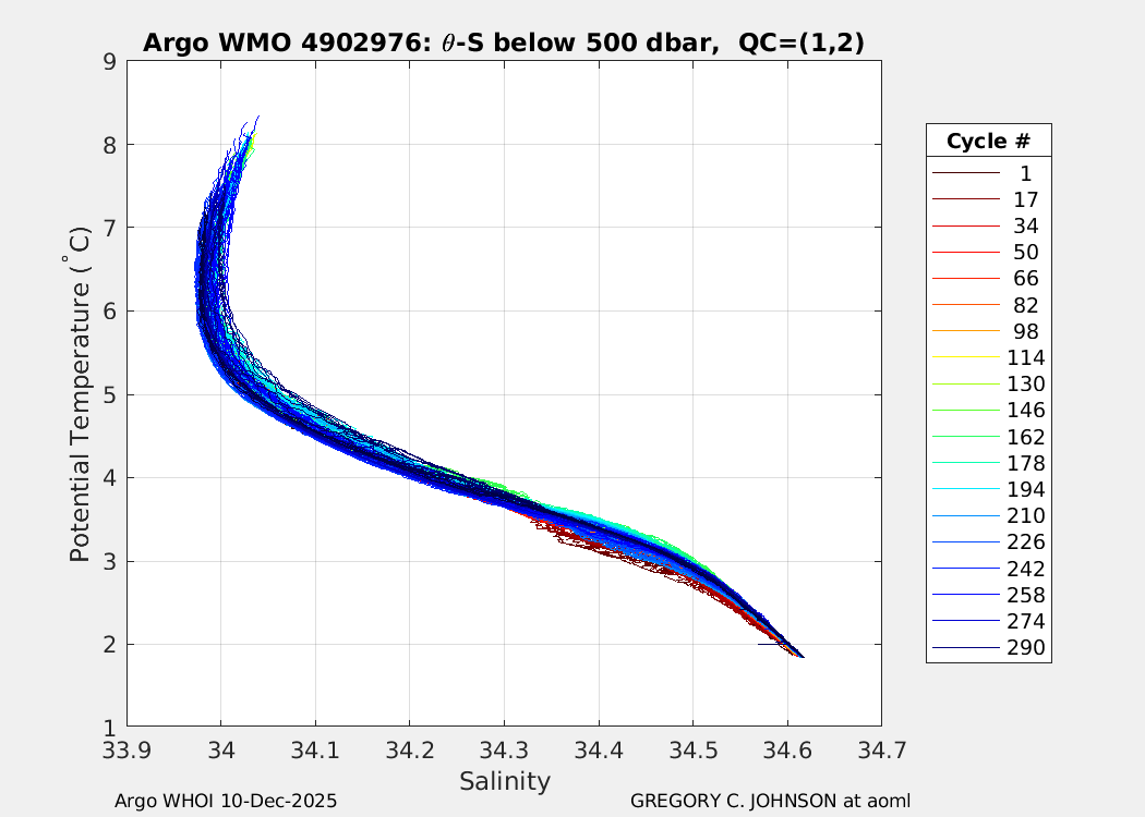 | WMO: #4902976 DAC: aoml PI: GREGORY C. JOHNSON NAVIS_A: #824 SBE41CP: #09762 DRUCK_2900PSIA: #10649292 Altimeter Comparison (IFREMER) EuroArgo Link | ![]() |