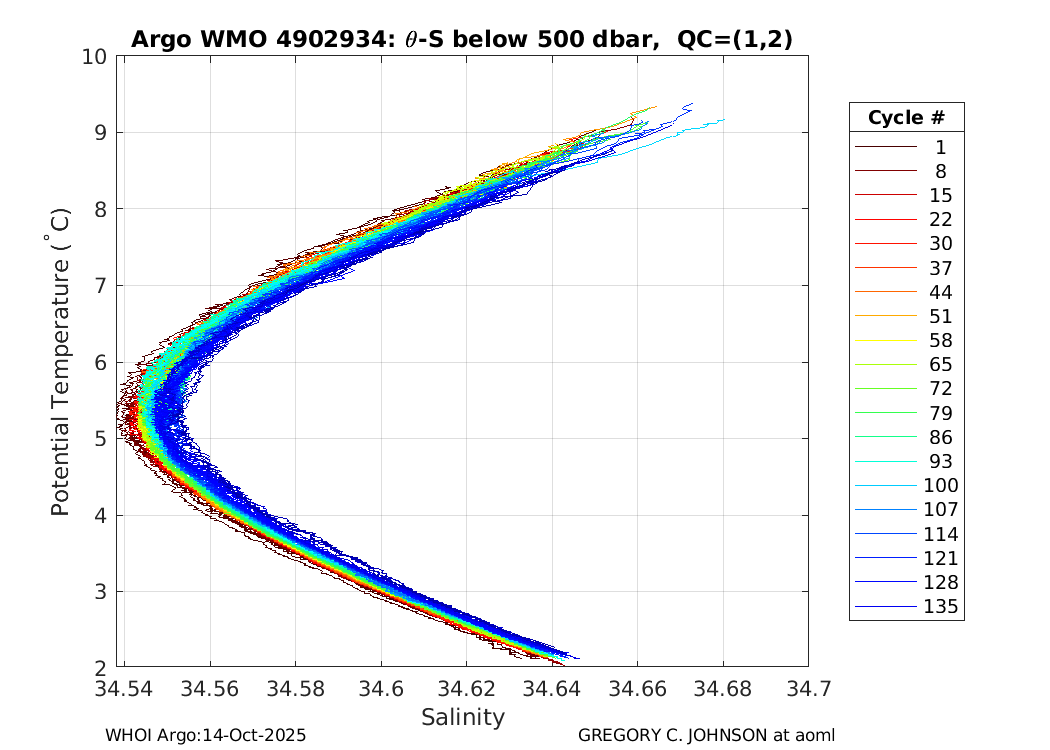 | WMO: #4902934 DAC: aoml PI: GREGORY C. JOHNSON NAVIS_A: #770 SBE41CP: #08928 DRUCK_2900PSIA: #10444174 Altimeter Comparison (IFREMER) EuroArgo Link | ![]() |