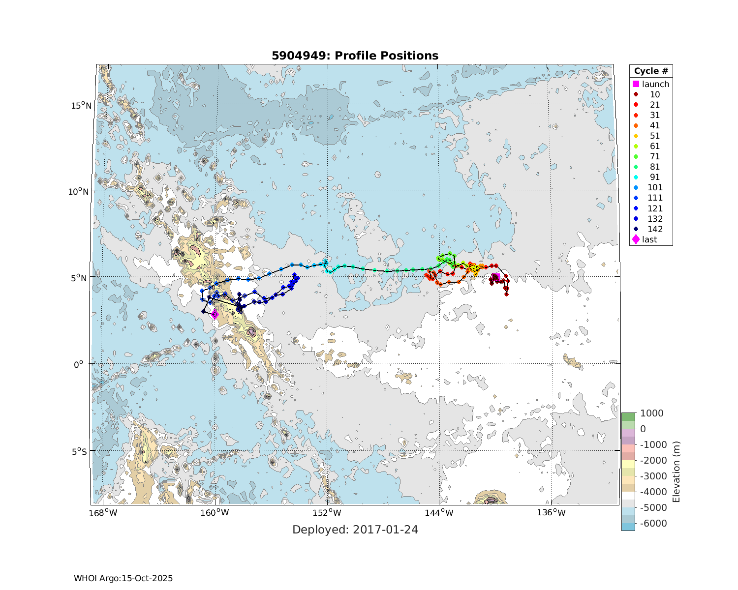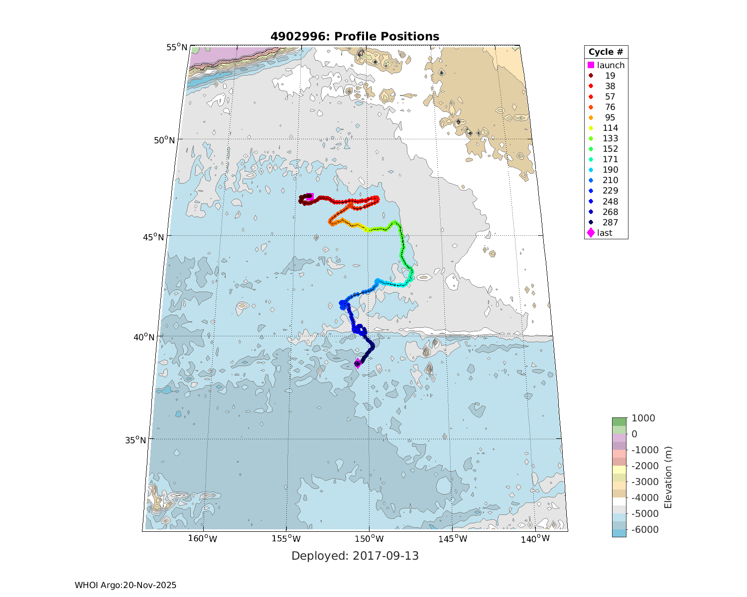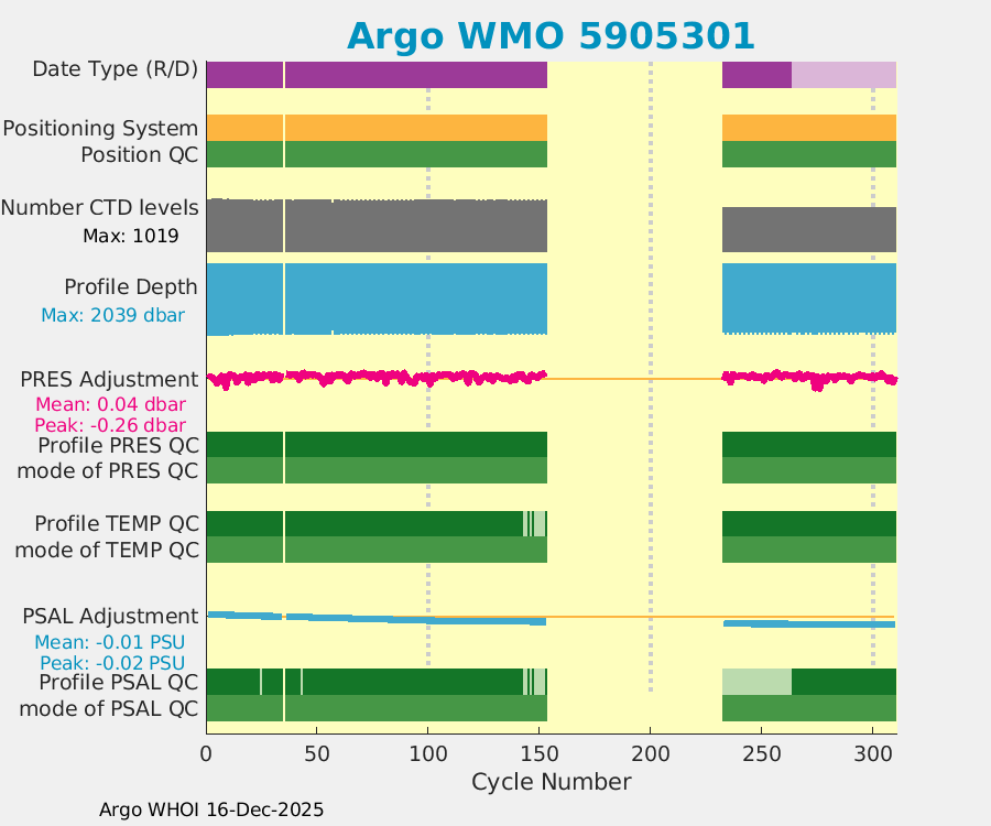 | WMO: #5905059 DAC: jma PI: JAMSTEC NAVIS_A: #628 DRUCK: #10229339 SBE41CP_V7.2.5: #8002 Altimeter Comparison (IFREMER) EuroArgo Link | ![]() |