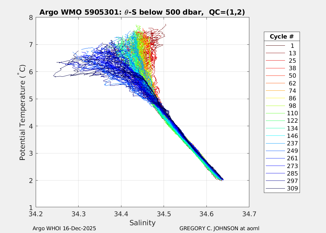 | WMO: #5905296 DAC: aoml PI: GREGORY C. JOHNSON NAVIS_A: #819 SBE41CP: #09642 DRUCK_2900PSIA: #10595910 Altimeter Comparison (IFREMER) EuroArgo Link | ![]() |