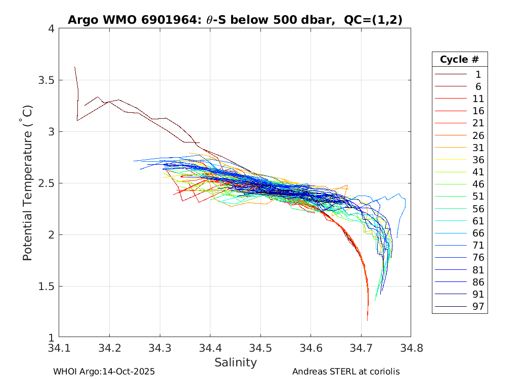 | WMO: #1901565 DAC: aoml PI: BRECK OWENS SOLO: #1091 SBE41CP: #3103 DRUCK_2900PSIA: #3174443 Altimeter Comparison (IFREMER) EuroArgo Link | ![]() |