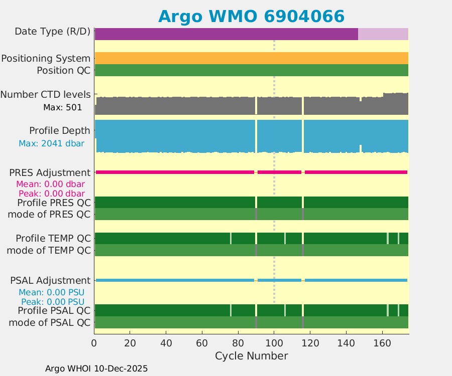 | WMO: #6904066 DAC: coriolis PI: Birgit KLEIN ARVOR: # FLOATCLOCK: # DRUCK: #11581252 SBE41CP: #13095 Altimeter Comparison (IFREMER) EuroArgo Link | ![]() |