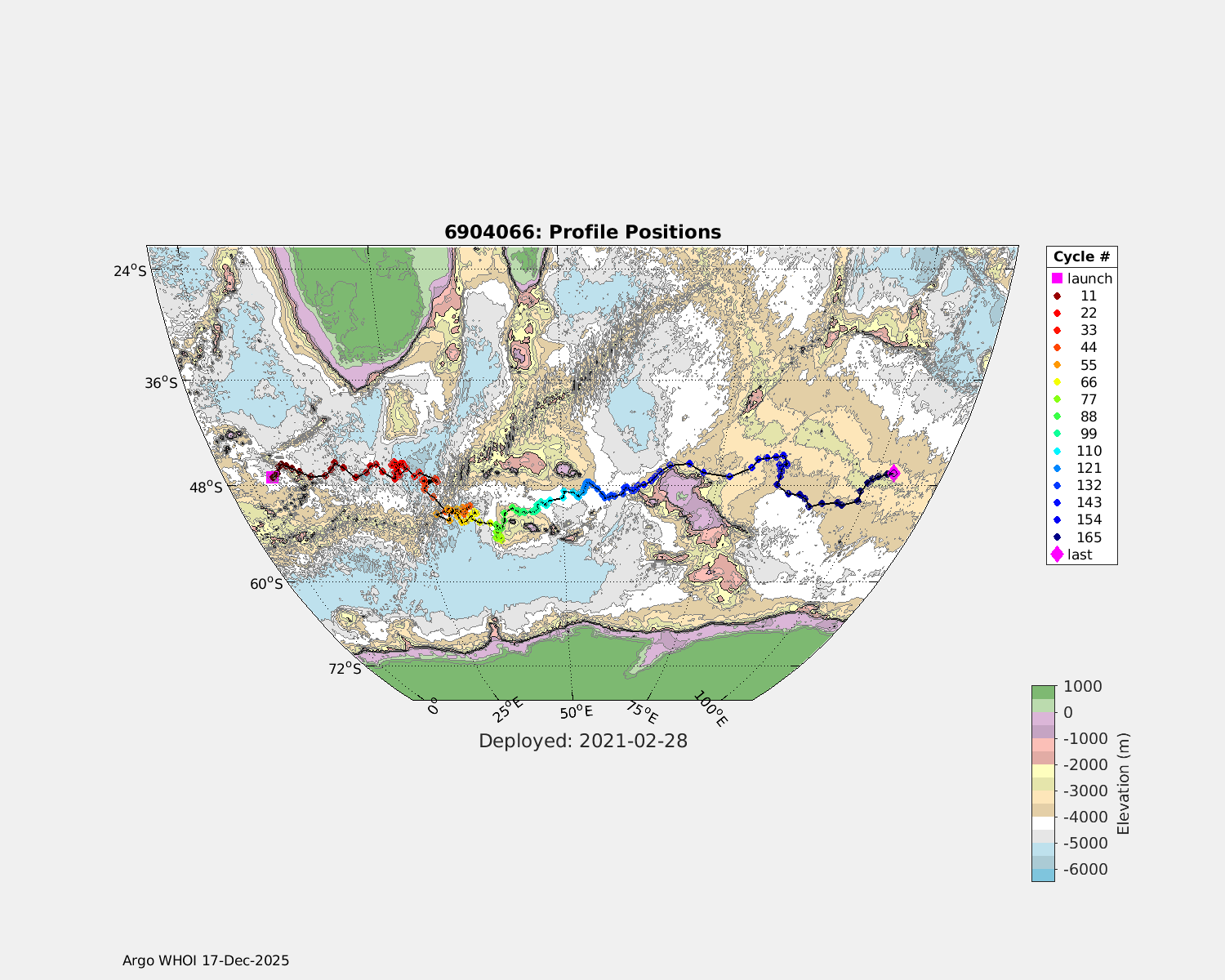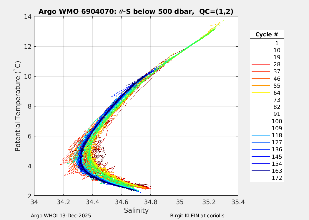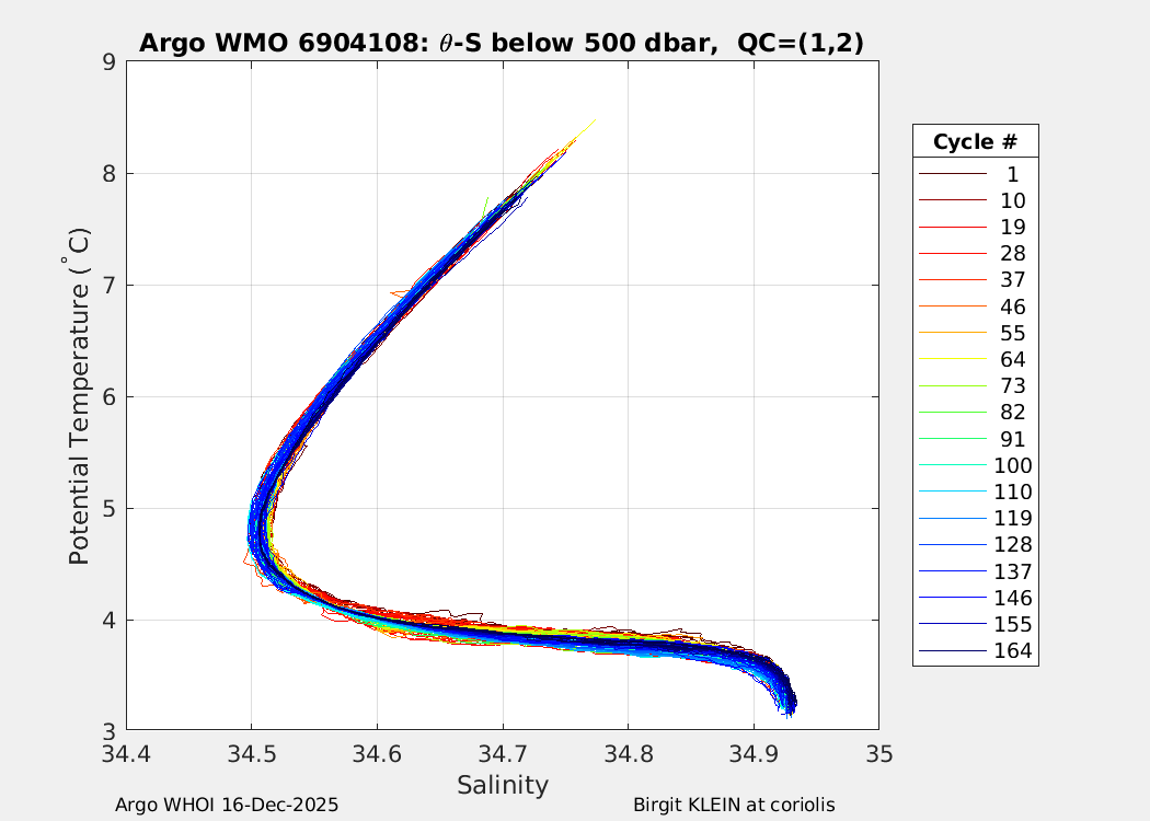 | WMO: #6904107 DAC: coriolis PI: Birgit KLEIN ARVOR: # FLOATCLOCK: # DRUCK: #11581237 SBE41CP: #13189 Altimeter Comparison (IFREMER) EuroArgo Link | ![]() |