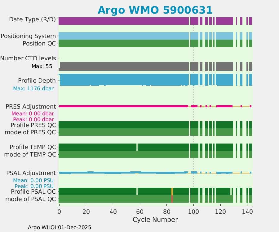 | WMO: #5900483 DAC: jma PI: JAMSTEC APEX: #1092 DRUCK: #4679 SBE41: #1170 Altimeter Comparison (IFREMER) EuroArgo Link | ![]() |