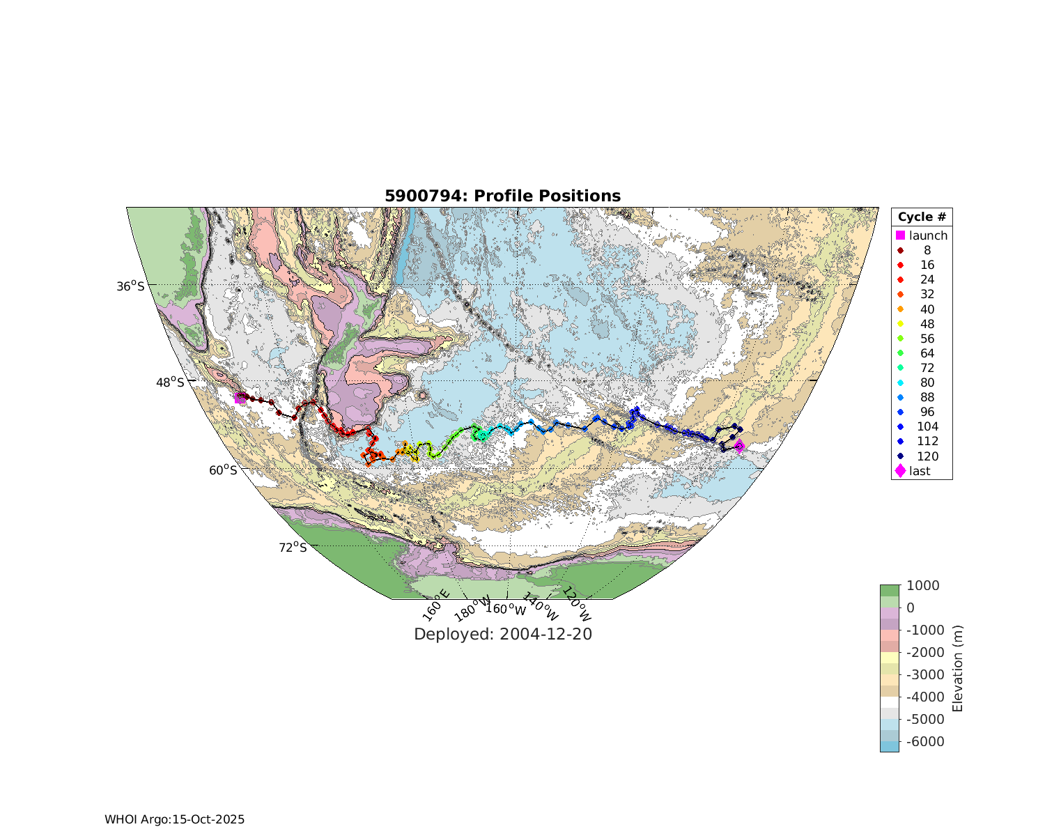 | WMO: #3900204 DAC: aoml PI: DEAN ROEMMICH SOLO: #2283 DRUCK_2900PSIA: #5035 SBE41CP_V1.7: #505 Altimeter Comparison (IFREMER) EuroArgo Link | ![]() |