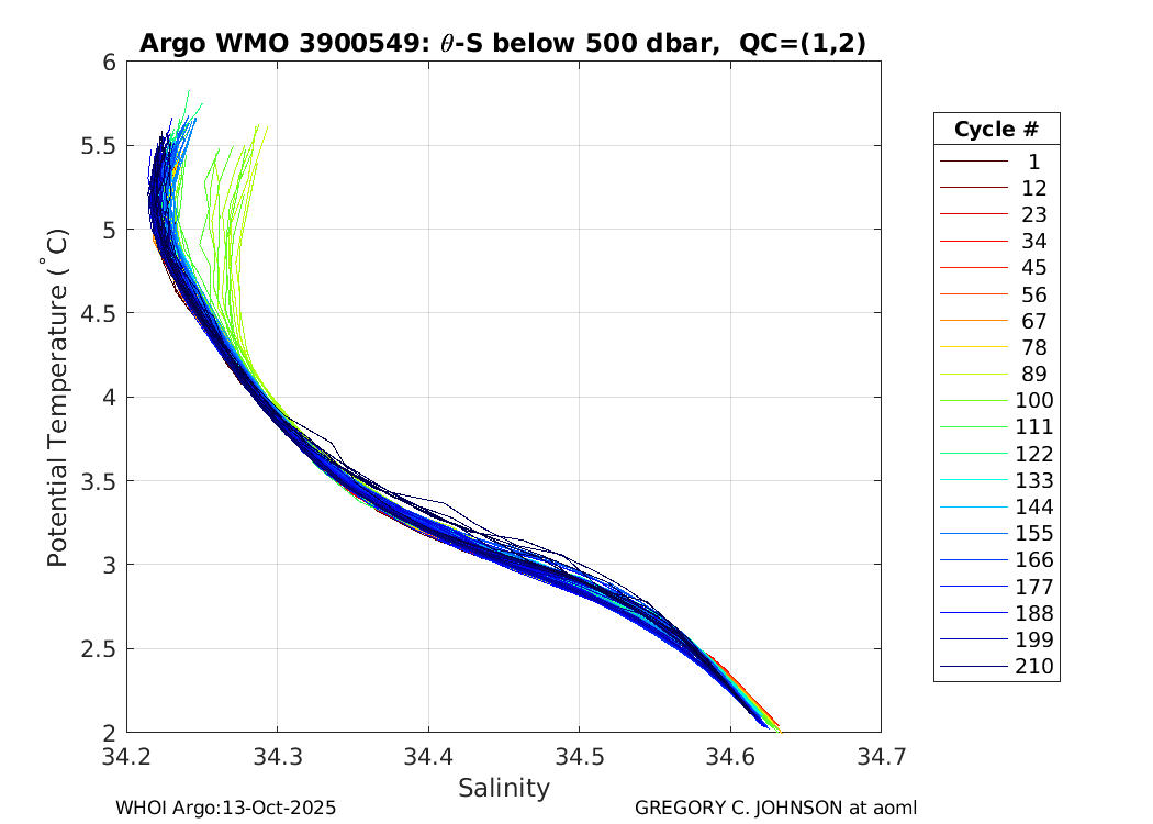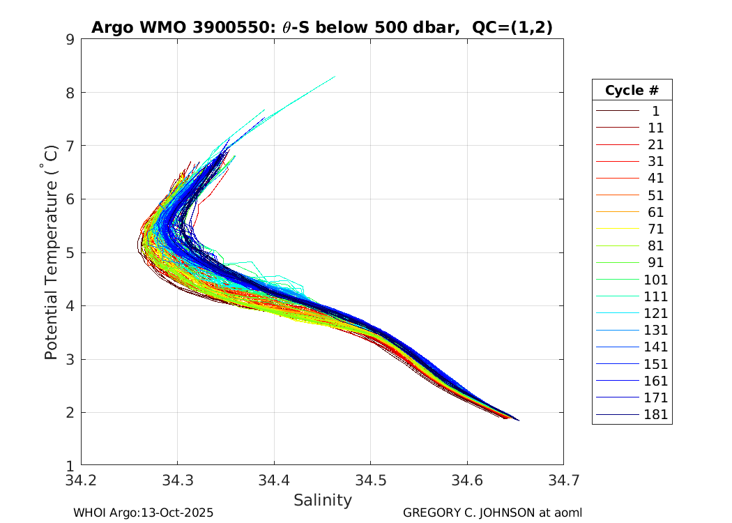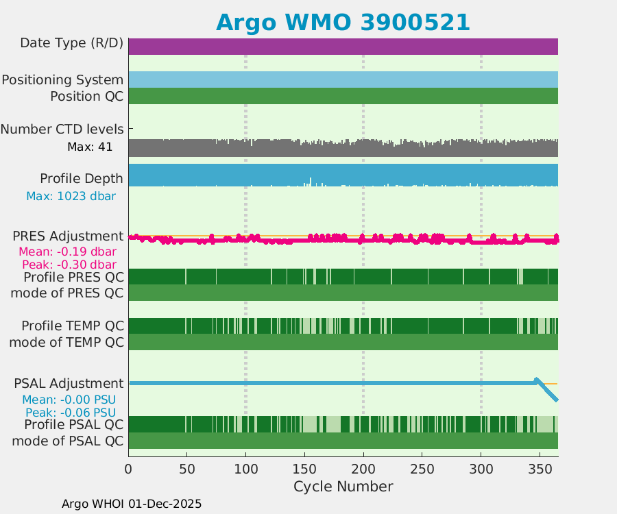 | WMO: #3900551 DAC: aoml PI: GREGORY C. JOHNSON APEX: #2335 SBE41: #2422 DRUCK_2900PSIA: #8229 Altimeter Comparison (IFREMER) EuroArgo Link | ![]() |