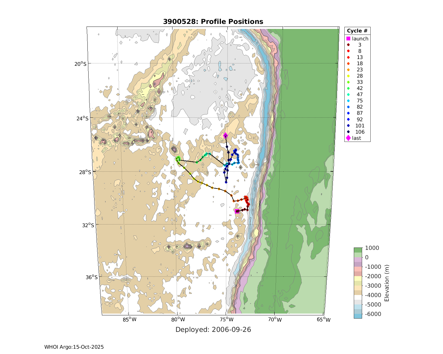 | WMO: #3900523 DAC: coriolis PI: Osvaldo ULLOA APEX: # SBE41: #n/a AANDERAA_OPTODE_3830: #n/a ECO_FLNTU: #n/a Altimeter Comparison (IFREMER) EuroArgo Link | ![]() |
