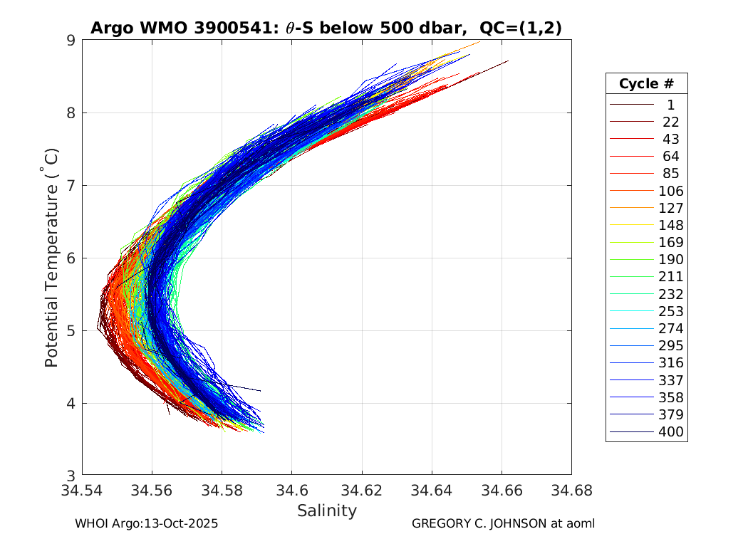 | WMO: #5901395 DAC: aoml PI: GREGORY C. JOHNSON APEX: #2990 SBE41: #3047 DRUCK_2900PSIA: #2324304 Altimeter Comparison (IFREMER) EuroArgo Link | ![]() |