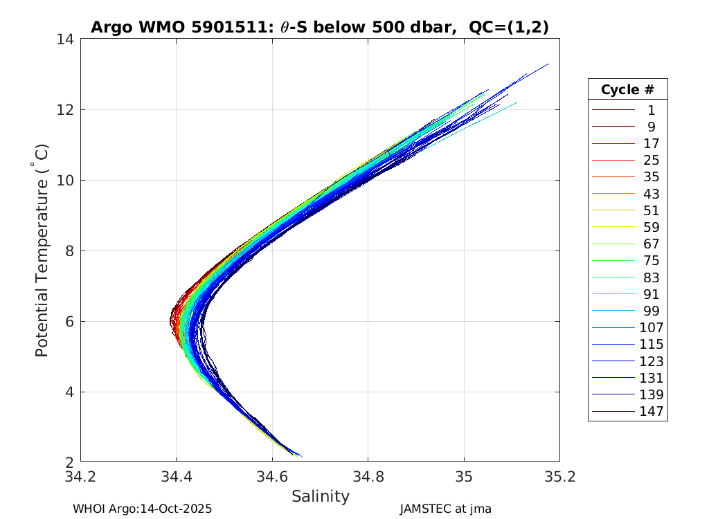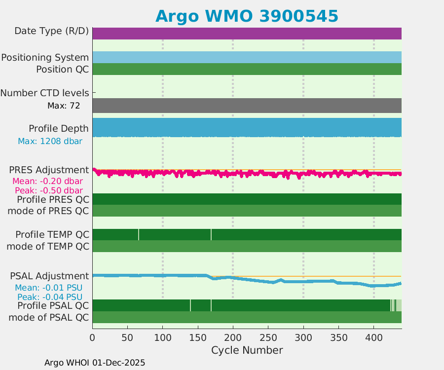 | WMO: #5901511 DAC: jma PI: JAMSTEC APEX: #2798 DRUCK: #10132 SBE41: #2829 Altimeter Comparison (IFREMER) EuroArgo Link | ![]() |