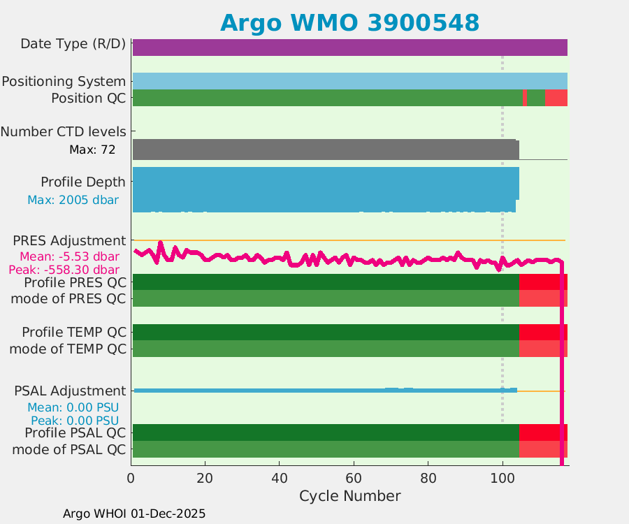 | WMO: #5901215 DAC: jma PI: JAMSTEC APEX: #2298 DRUCK: #8216 SBE41: #2413 Altimeter Comparison (IFREMER) EuroArgo Link | ![]() |