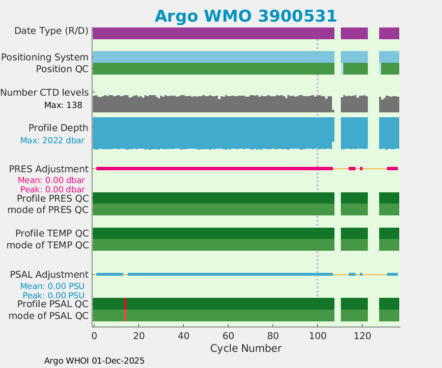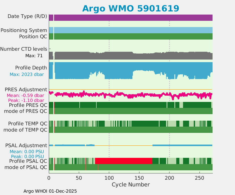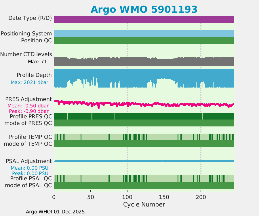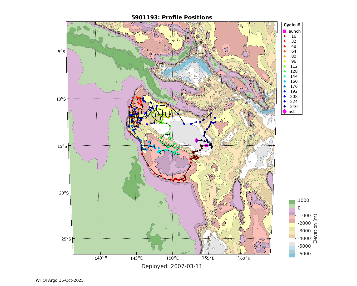 | WMO: #5901193 DAC: csiro PI: Susan Wijffels APEX: #2960 SBE41_V2.6: #3003 DRUCK: #2328576 Altimeter Comparison (IFREMER) EuroArgo Link | ![]() |