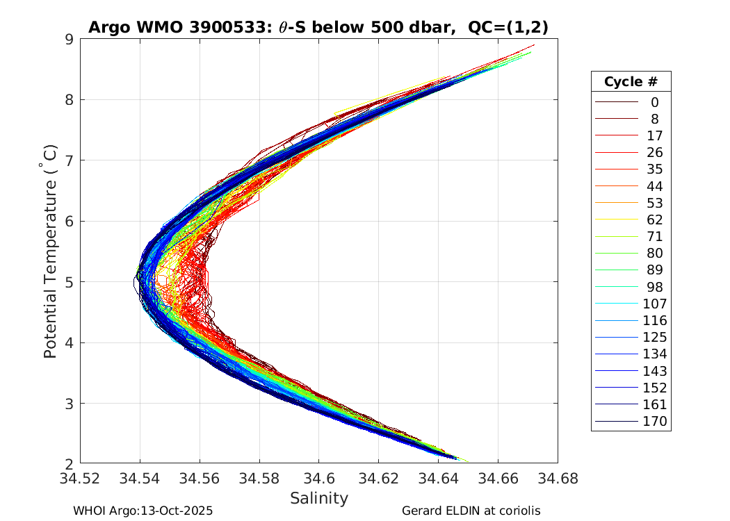 | WMO: #3900638 DAC: aoml PI: DEAN ROEMMICH SOLO: #2734 DRUCK_2900PSIA: #2424886 SBE41CP_V2: #1850 Altimeter Comparison (IFREMER) EuroArgo Link | ![]() |