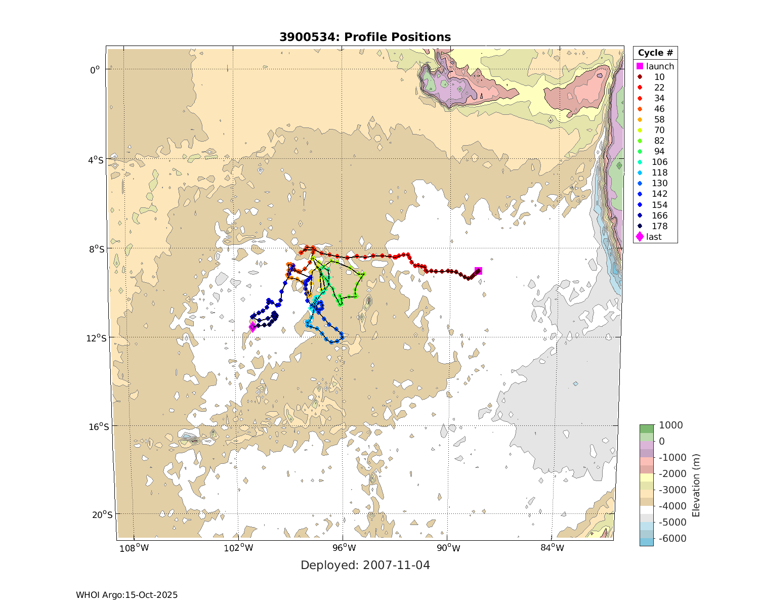 | WMO: #3900625 DAC: aoml PI: DEAN ROEMMICH SOLO: #2710 DRUCK_2900PSIA: #2424869 SBE41CP_V2: #1845 Altimeter Comparison (IFREMER) EuroArgo Link | ![]() |