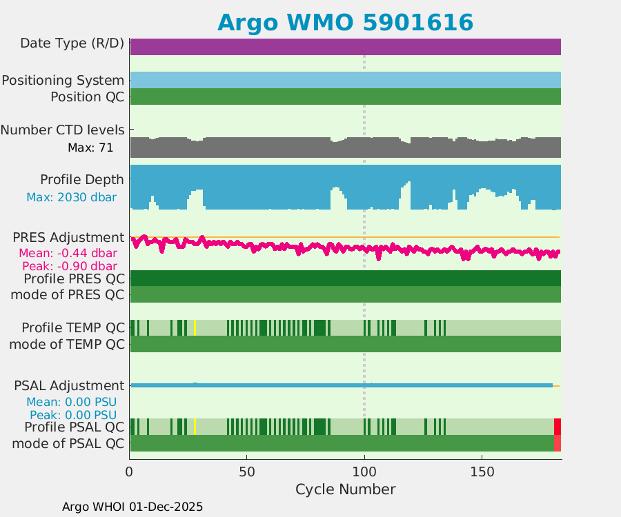 | WMO: #5901535 DAC: jma PI: JAMSTEC APEX: #2760 DRUCK: #9761 SBE41: #2777 Altimeter Comparison (IFREMER) EuroArgo Link | ![]() |