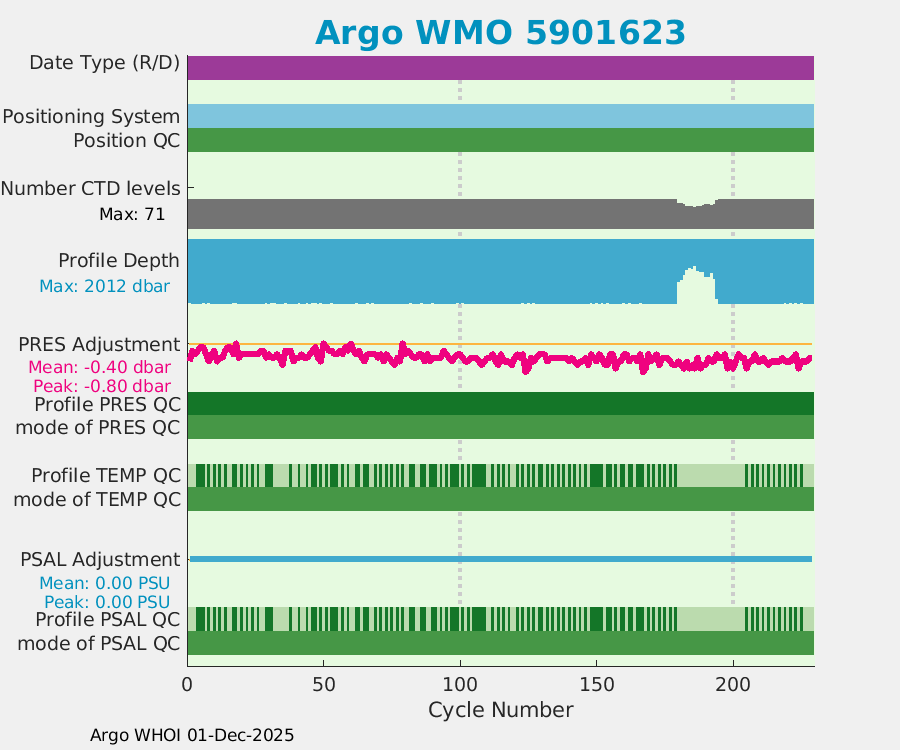 | WMO: #5901623 DAC: csiro PI: Susan Wijffels APEX: #2859 SBE41_V2.6: #2928 DRUCK: #10490 Altimeter Comparison (IFREMER) EuroArgo Link | ![]() |