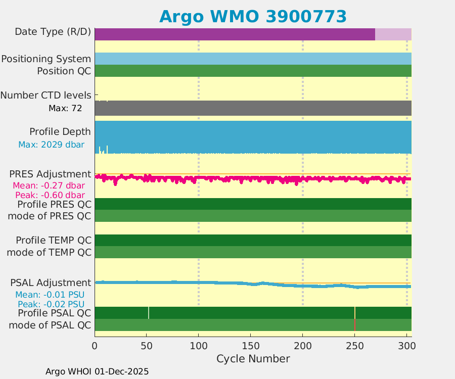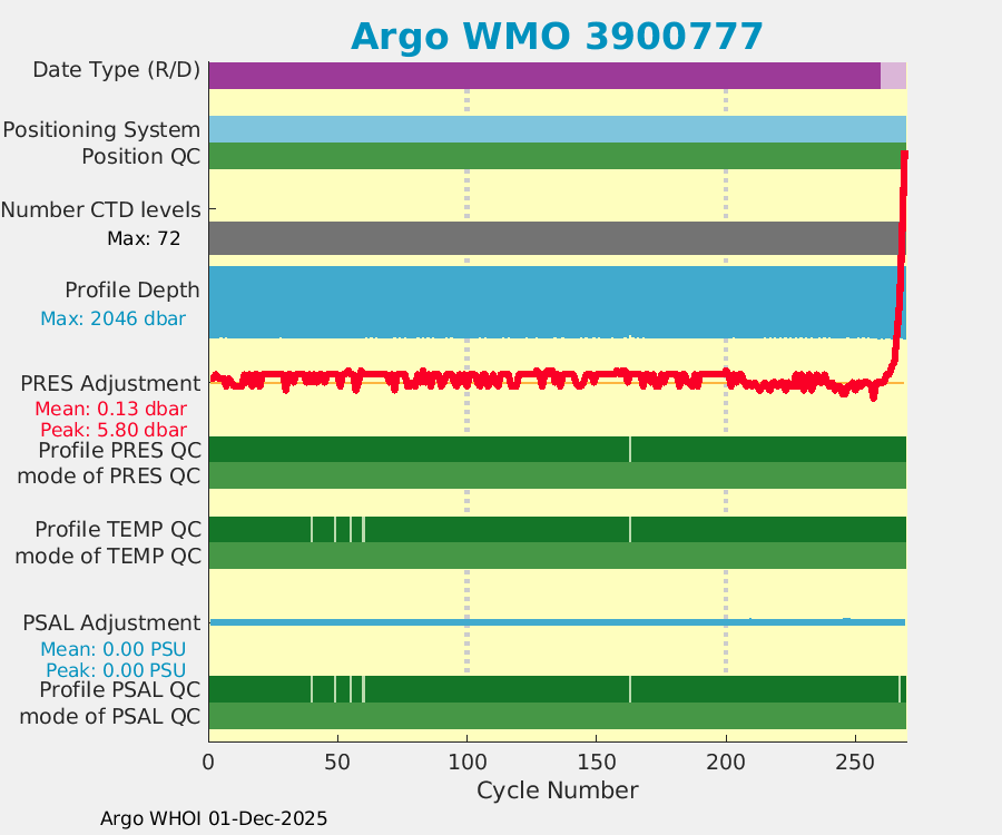 | WMO: #5902257 DAC: aoml PI: STEPHEN RISER APEX: #4526 SBE41: #4559 DRUCK_2900PSIA: #2926611 Altimeter Comparison (IFREMER) EuroArgo Link | ![]() |