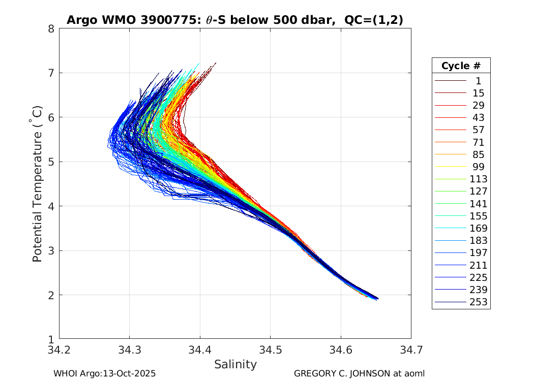 | WMO: #3900780 DAC: aoml PI: GREGORY C. JOHNSON APEX: #4678 SBE41CP: #2693 DRUCK_2900PSIA: #2952896 Altimeter Comparison (IFREMER) EuroArgo Link | ![]() |