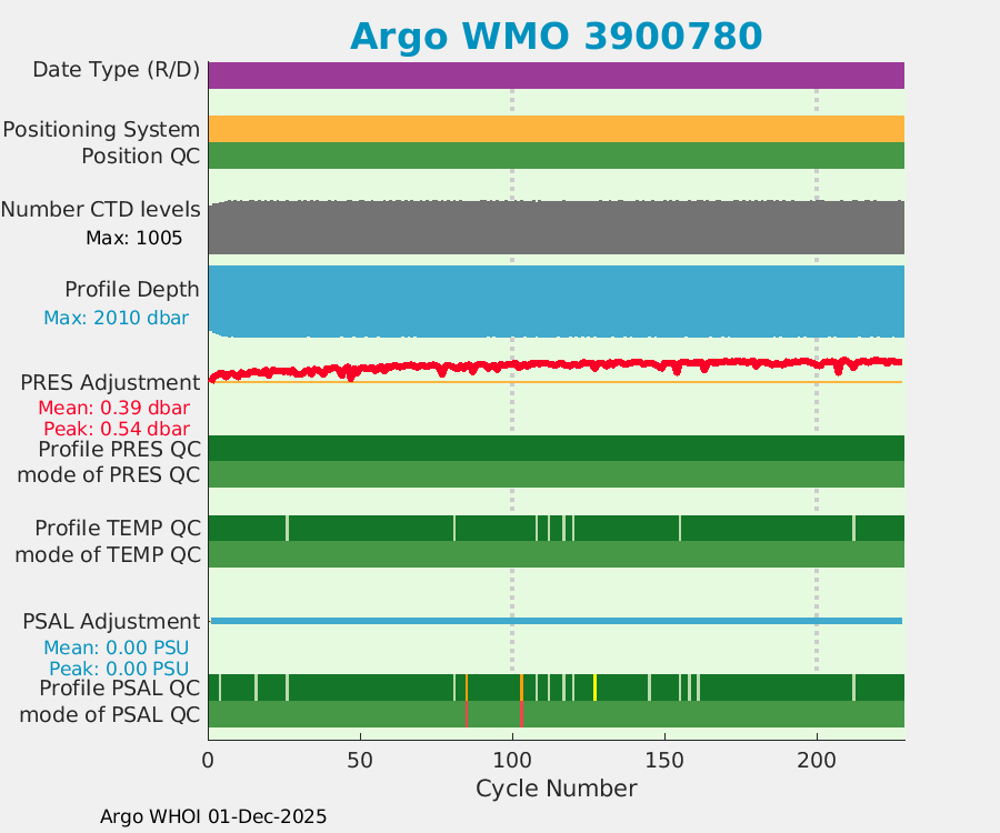 | WMO: #5903642 DAC: csiro PI: Susan Wijffels APEX: #5044 SBE41CP_V2: #3175 DRUCK: #3053362 Altimeter Comparison (IFREMER) EuroArgo Link | ![]() |