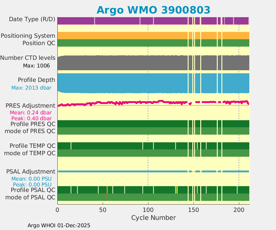 | WMO: #5903632 DAC: csiro PI: Susan Wijffels APEX: #5078 SBE41_V3: #4848 DRUCK: #3053359 Altimeter Comparison (IFREMER) EuroArgo Link | ![]() |