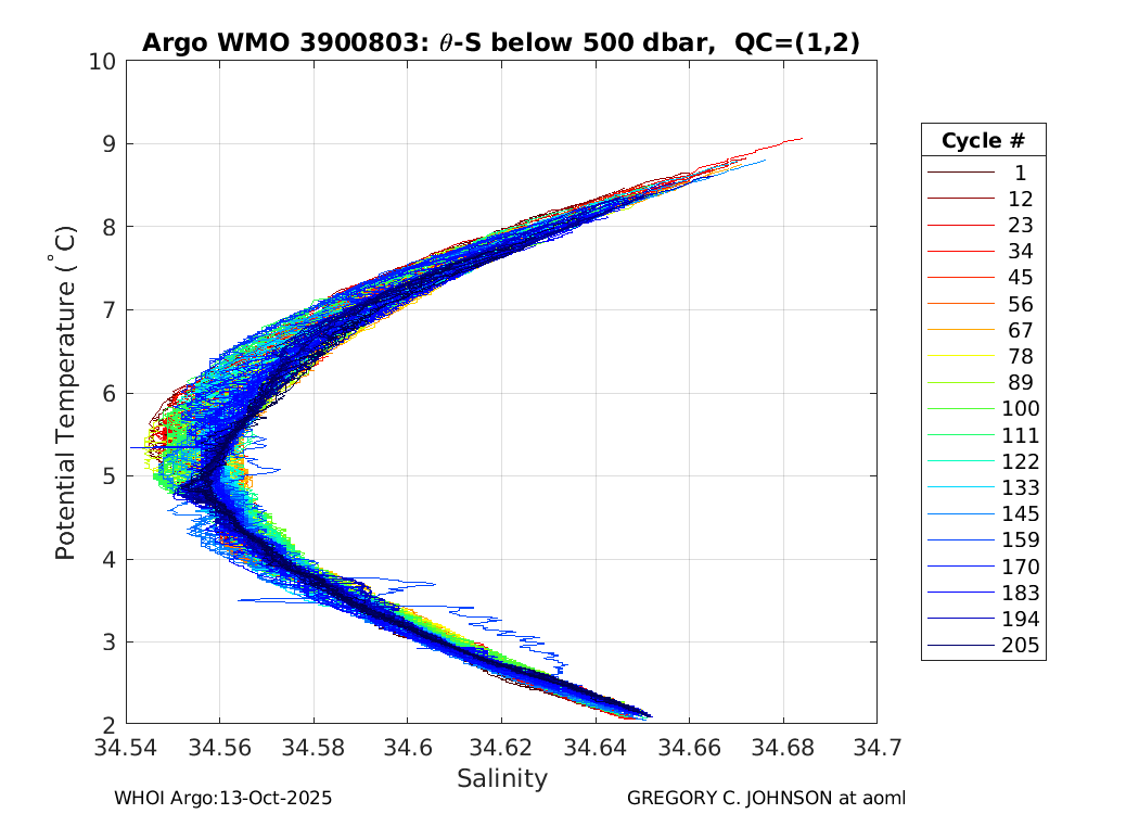 | WMO: #5903448 DAC: aoml PI: GREGORY C. JOHNSON APEX: #4601 SBE41CP: #2673 DRUCK_2900PSIA: #2985689 Altimeter Comparison (IFREMER) EuroArgo Link | ![]() |