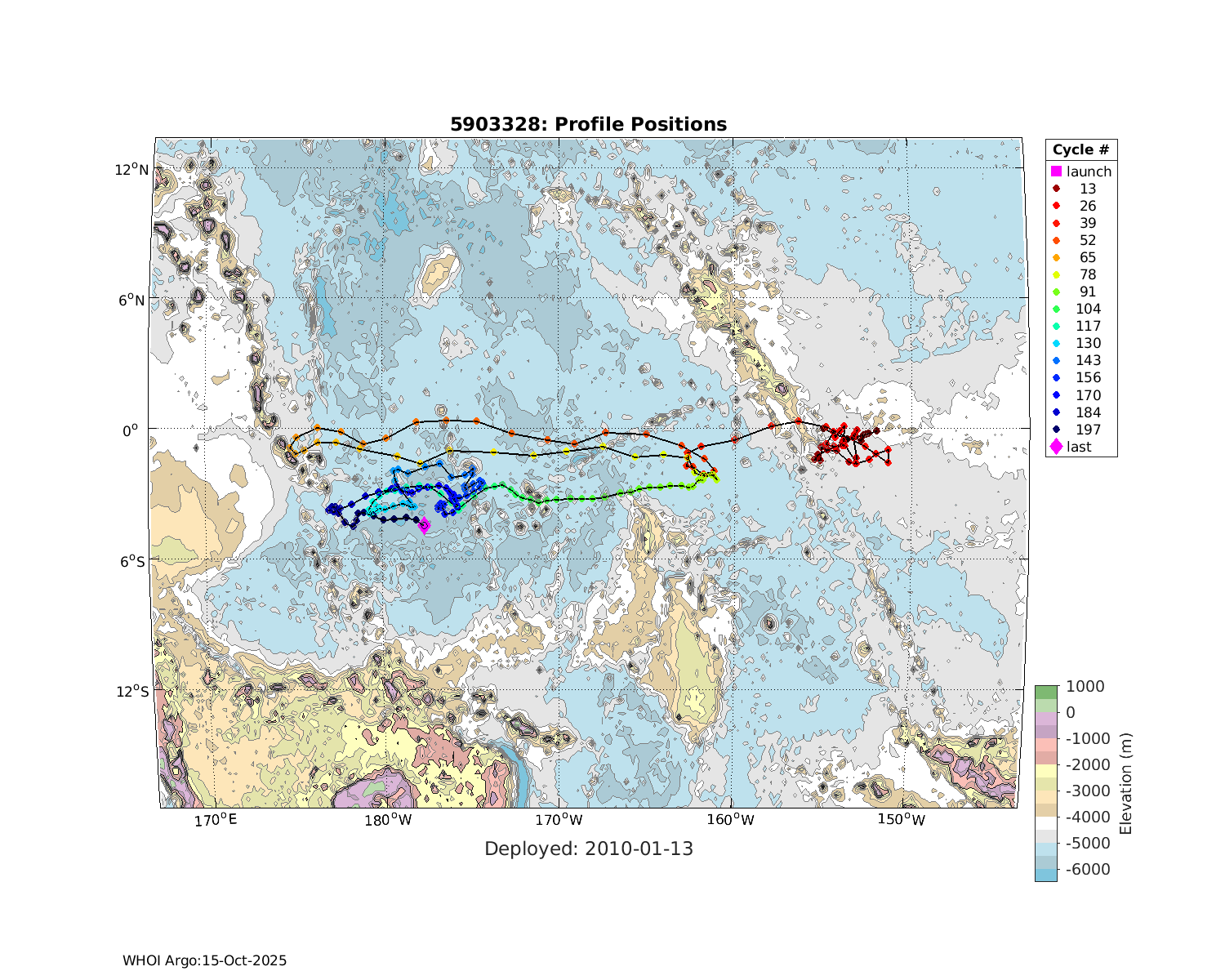 | WMO: #5903333 DAC: aoml PI: PHIL SUTTON SOLO: #2873 DRUCK_2900PSIA: #2985302 SBE41CP_V3: #2451 Altimeter Comparison (IFREMER) EuroArgo Link | ![]() |