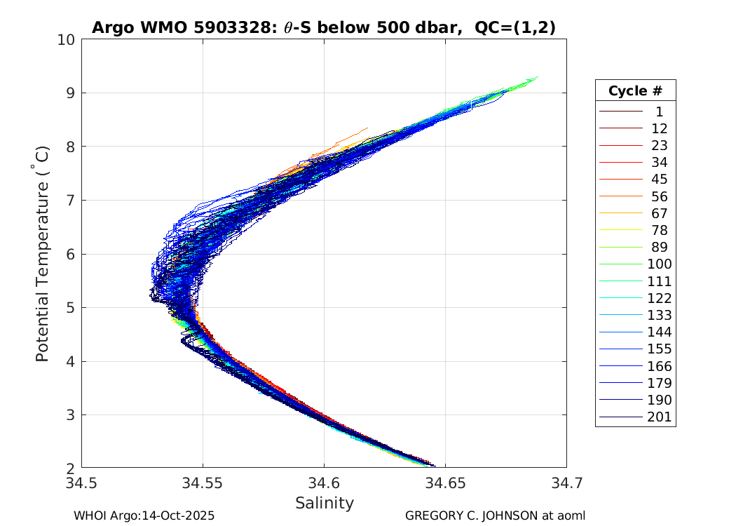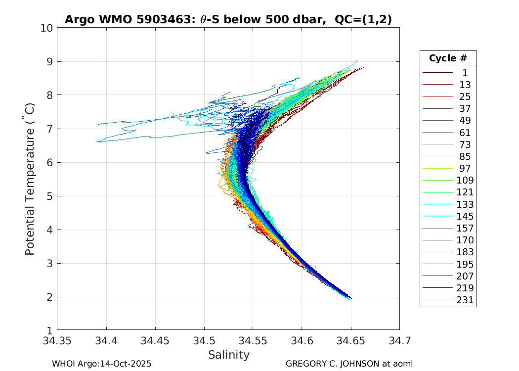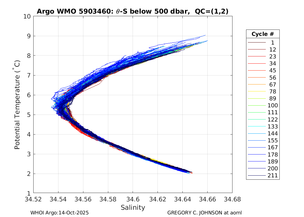 | WMO: #5903460 DAC: aoml PI: GREGORY C. JOHNSON APEX: #4605 SBE41CP: #2677 DRUCK_2900PSIA: #2985678 Altimeter Comparison (IFREMER) EuroArgo Link | ![]() |