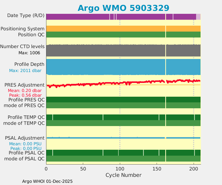 | WMO: #5903353 DAC: aoml PI: STEPHEN RISER APEX: #5144 SBE41: #5031 DRUCK_2900PSIA: #3061650 Altimeter Comparison (IFREMER) EuroArgo Link | ![]() |