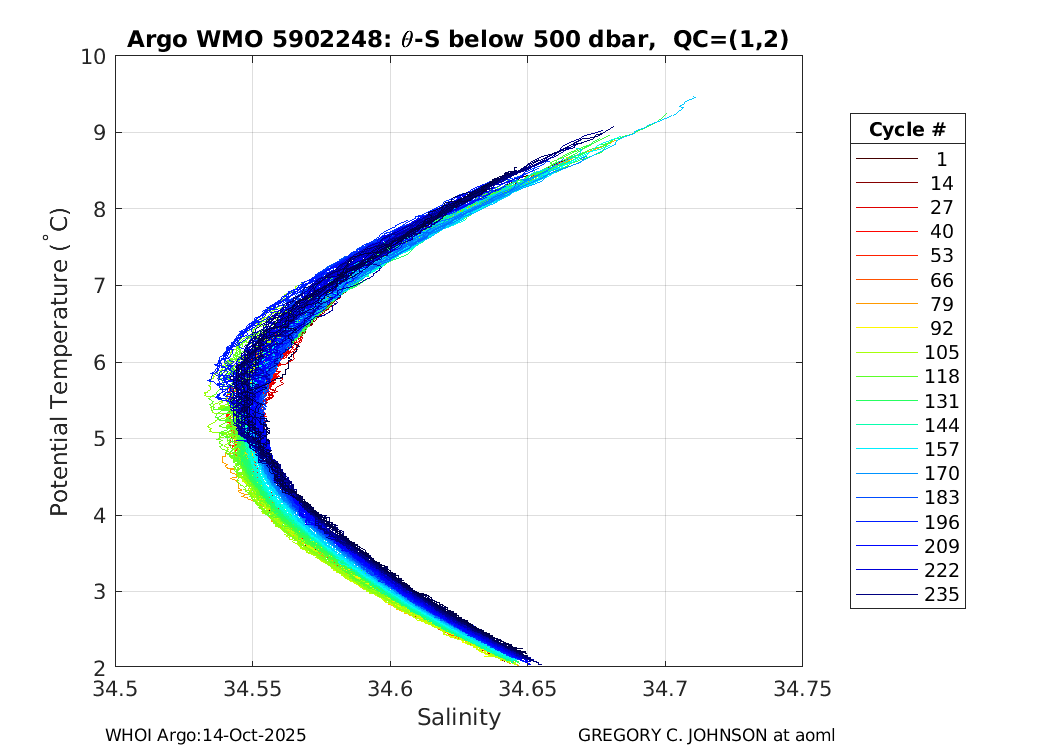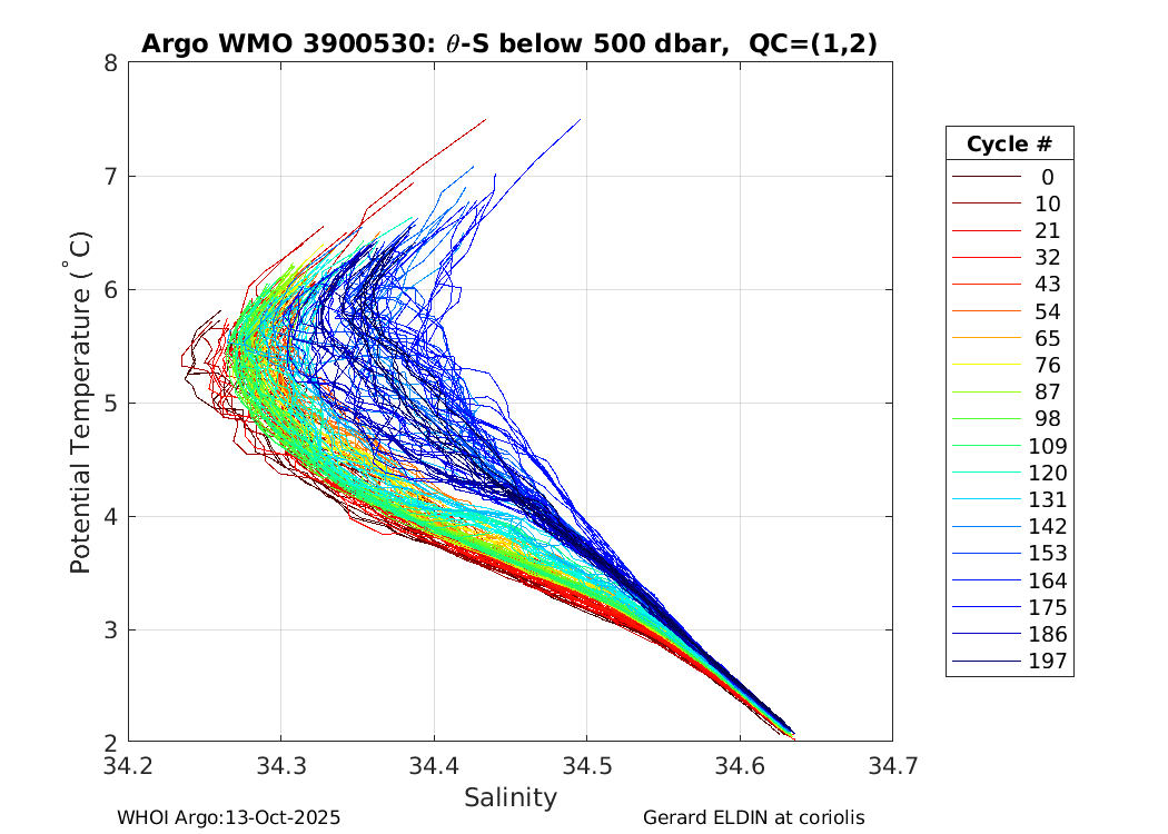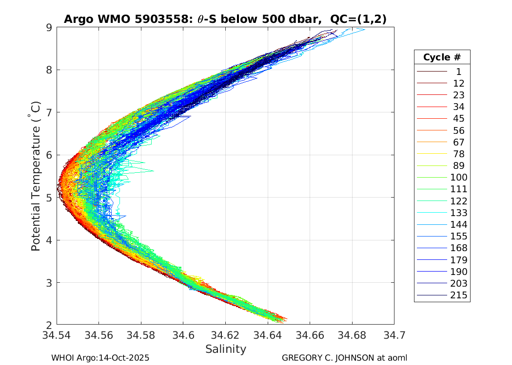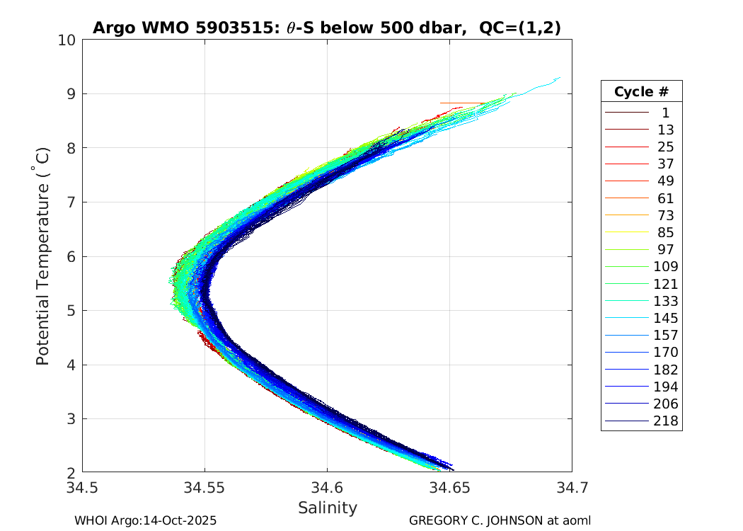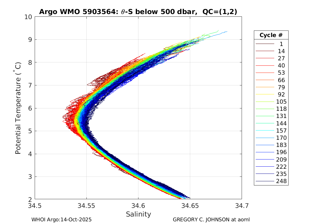 | WMO: #5903565 DAC: aoml PI: GREGORY C. JOHNSON APEX: #5419 SBE41CP: #3498 DRUCK_2900PSIA: #3166867 Altimeter Comparison (IFREMER) EuroArgo Link | ![]() |
