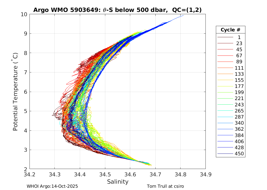 | WMO: #5903649 DAC: csiro PI: Tom Trull APEX: #5117 SBE41CP_IDO_V2.0b: #3025 DRUCK: #3058466 SBE43F_IDO: #565 ECO_FLBB_AP2: #1694 Altimeter Comparison (IFREMER) EuroArgo Link | ![]() |