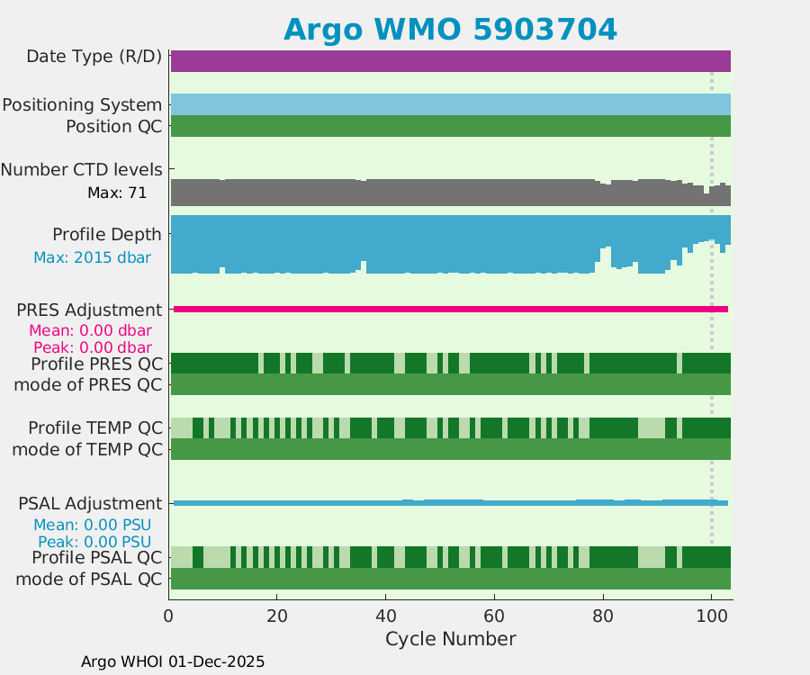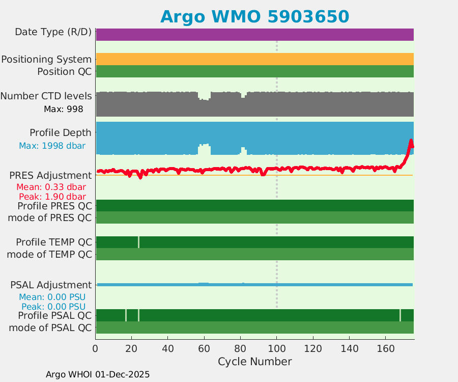| WMO: #5903698 DAC: csiro PI: Susan Wijffels APEX: #5751 SBE41CP_V2: #3272 DRUCK: #3167402 Altimeter Comparison (IFREMER) EuroArgo Link | ![]() |