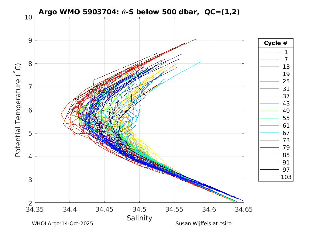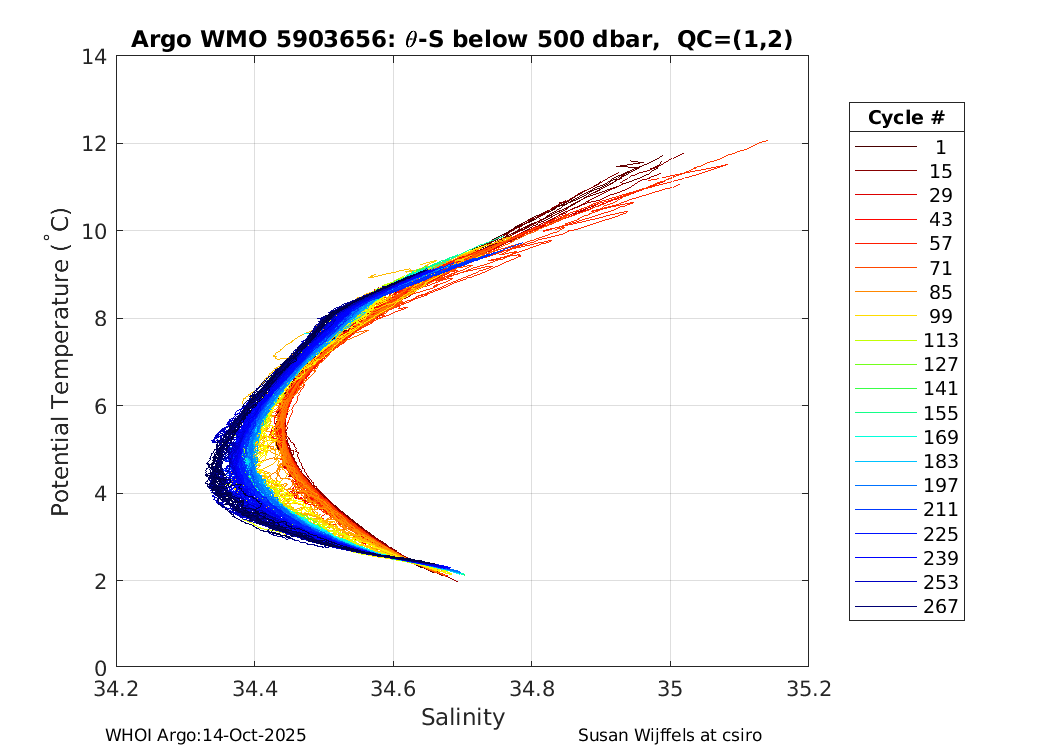 | WMO: #5903704 DAC: csiro PI: Susan Wijffels APEX: #4034 SBE41_V3: #4317 DRUCK: #2488297 Altimeter Comparison (IFREMER) EuroArgo Link | ![]() |