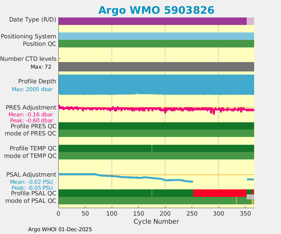 | WMO: #5903426 DAC: aoml PI: STEPHEN RISER APEX: #4934 SBE41: #4864 DRUCK_2900PSIA: #3042907 Altimeter Comparison (IFREMER) EuroArgo Link | ![]() |
