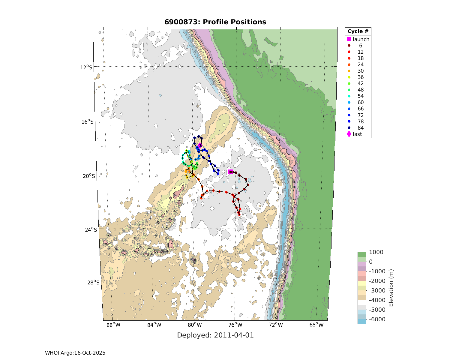 | WMO: #6900873 DAC: coriolis PI: Rena CZESCHEL APEX: #5632 SBE41: #5549 AANDERAA_OPTODE_3830: #1384 Altimeter Comparison (IFREMER) EuroArgo Link | ![]() |
