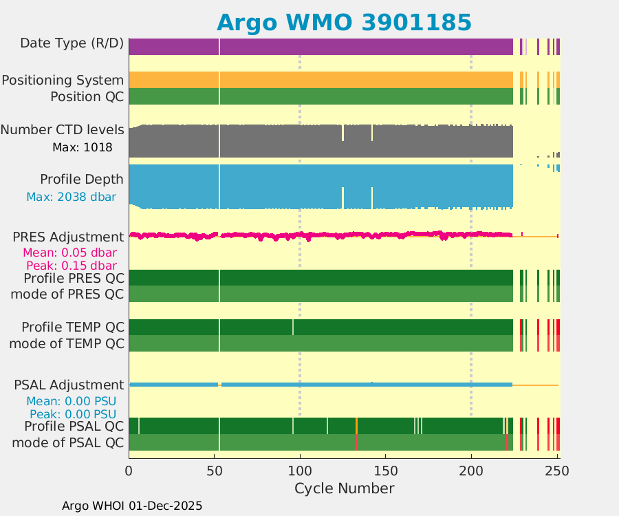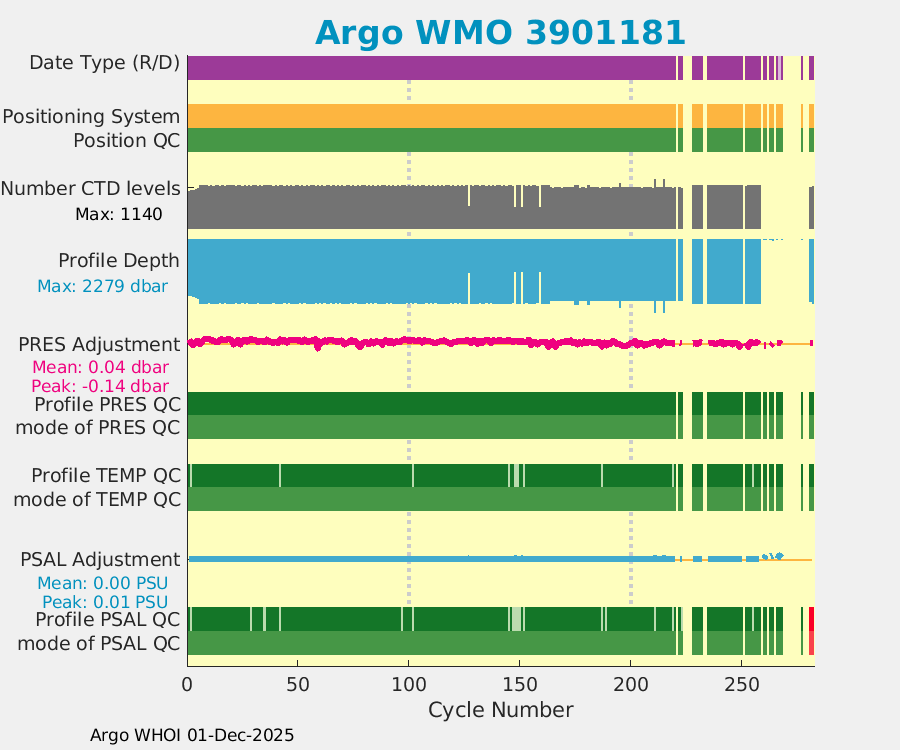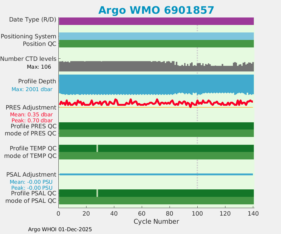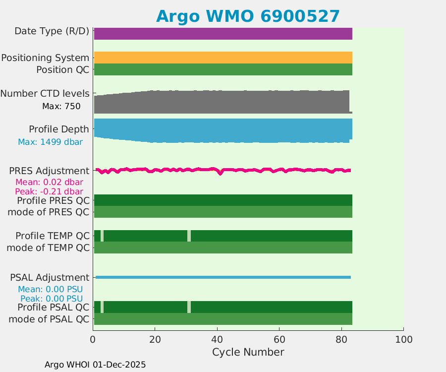 | WMO: #5904438 DAC: aoml PI: STEPHEN RISER APEX: #6969 SBE41: #6417 DRUCK_2900PSIA: #2149166 Altimeter Comparison (IFREMER) EuroArgo Link | ![]() |