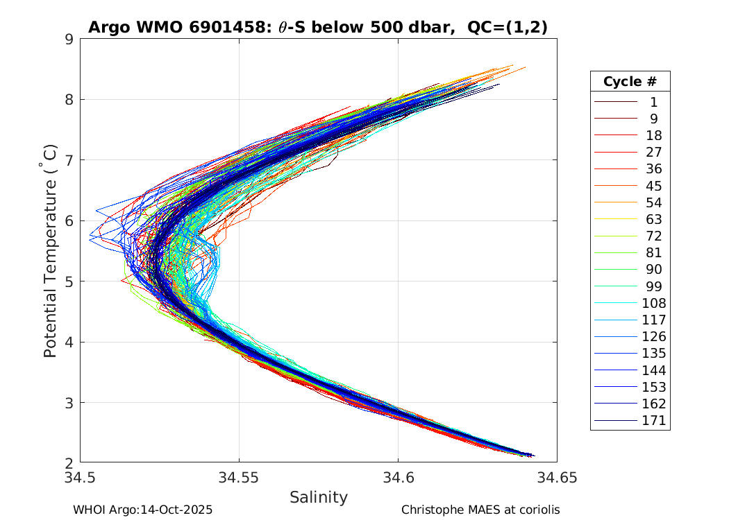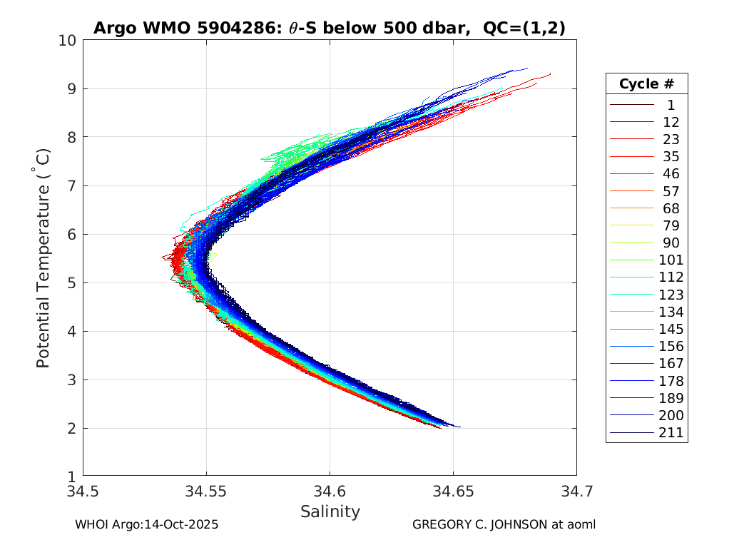 | WMO: #3901046 DAC: aoml PI: BRECK OWENS, STEVEN JAYNE, PELLE ROBBINS S2-A: #7215 SBE41CP: #4935 DRUCK_2900PSIA: #3771020 Altimeter Comparison (IFREMER) EuroArgo Link | ![]() |