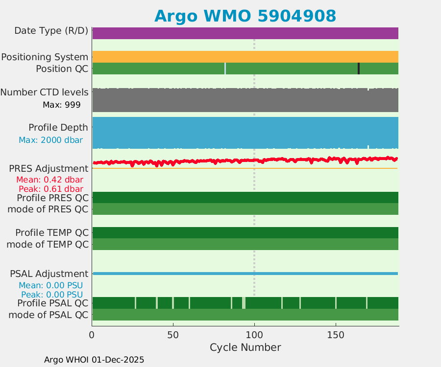 | WMO: #5904908 DAC: csiro PI: Susan Wijffels APEX: #5753 SBE41CP_V2: #3539 DRUCK: #3209095 Altimeter Comparison (IFREMER) EuroArgo Link | ![]() |