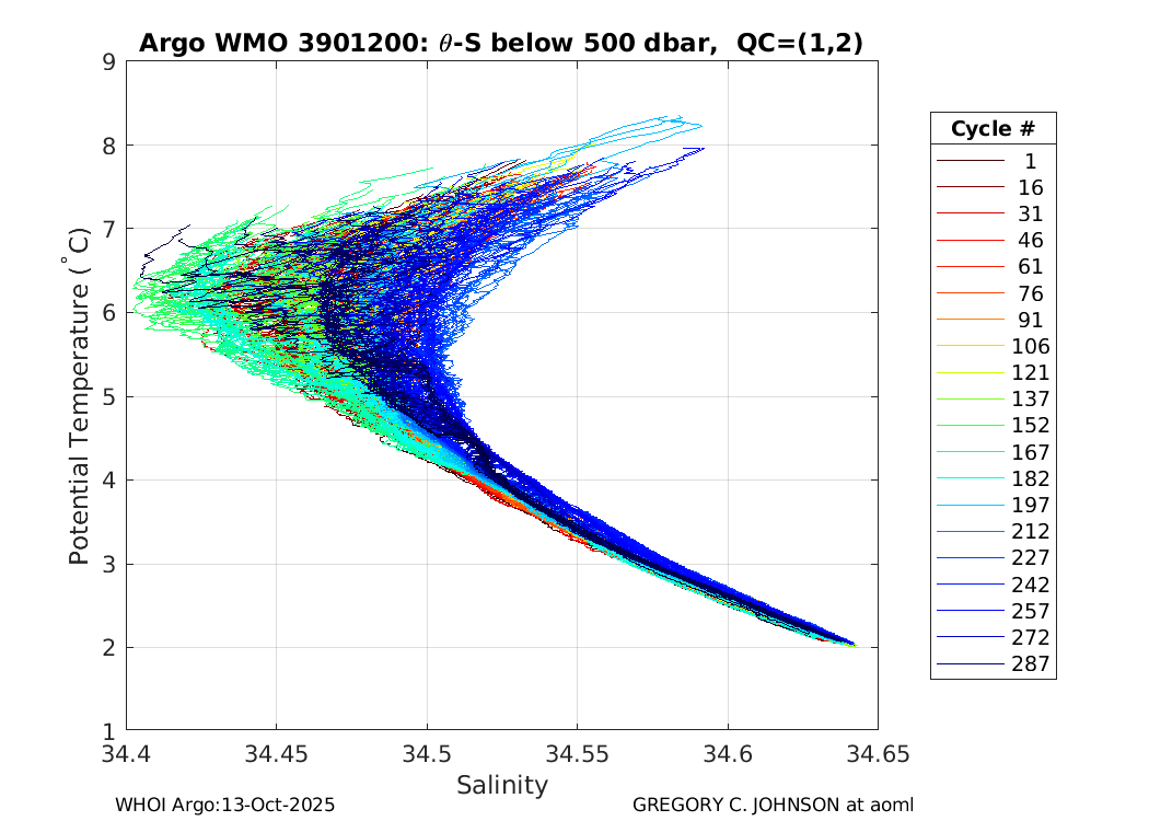 | WMO: #3901290 DAC: aoml PI: GREGORY C. JOHNSON NAVIS_A: #725 SBE41CP: #08558 DRUCK_2900PSIA: #10300887 Altimeter Comparison (IFREMER) EuroArgo Link | ![]() |