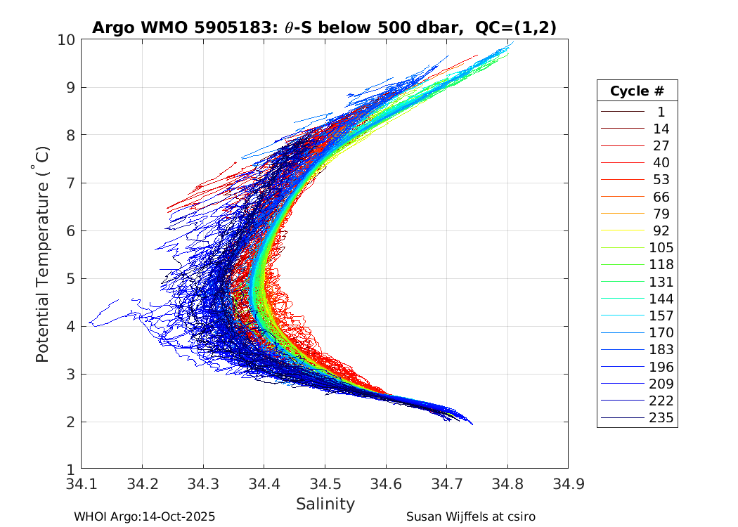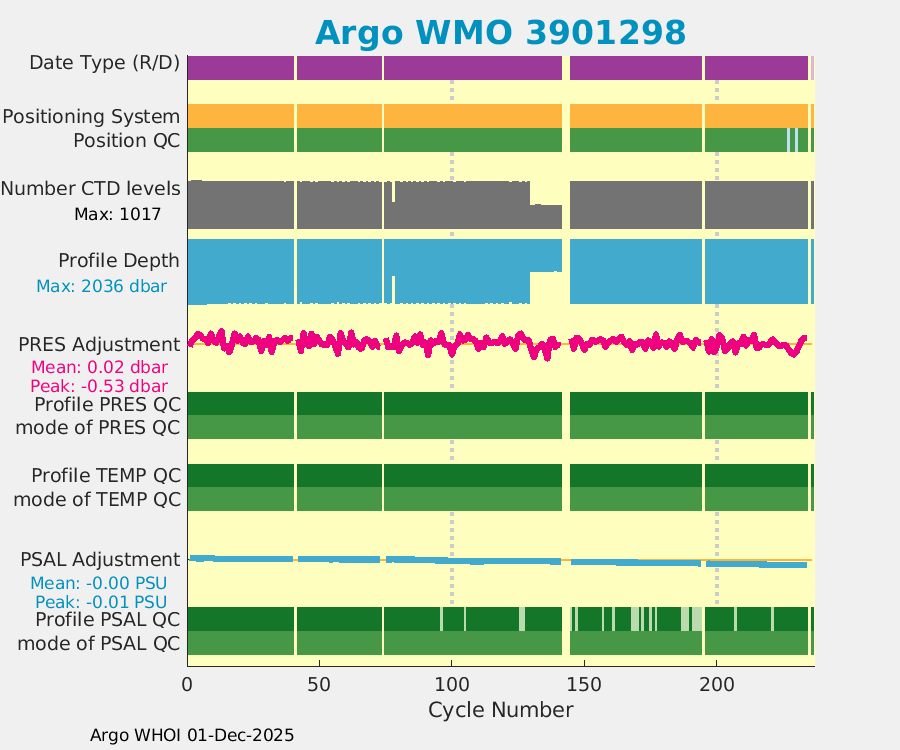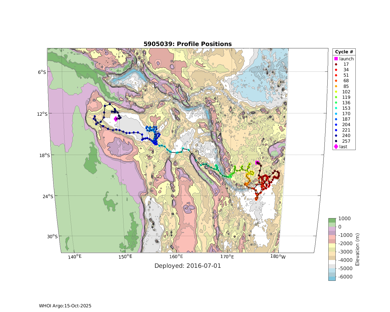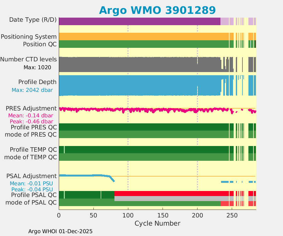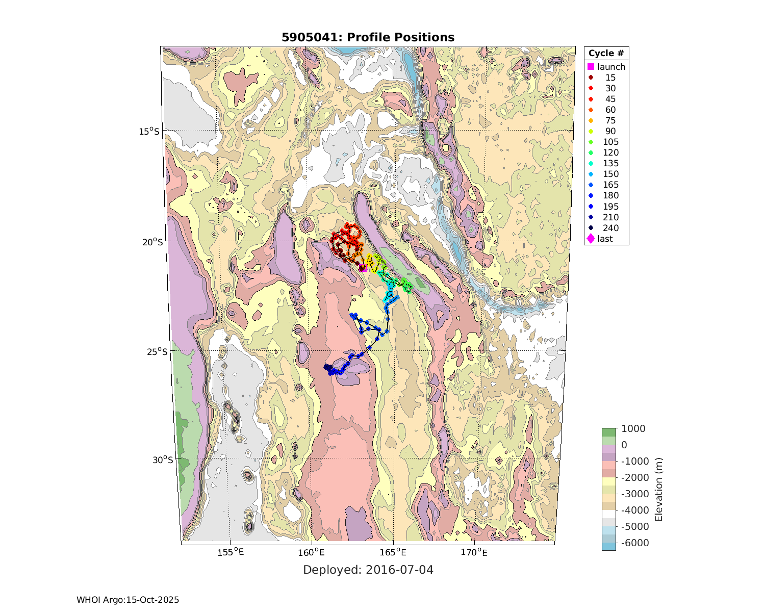 | WMO: #5905191 DAC: csiro PI: Susan Wijffels NAVIS_EBR: #763 SBE41CP_V7.2.5: #8633 DRUCK: #10300736 Altimeter Comparison (IFREMER) EuroArgo Link | ![]() |