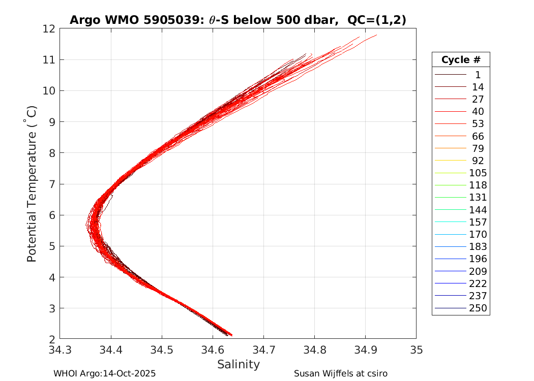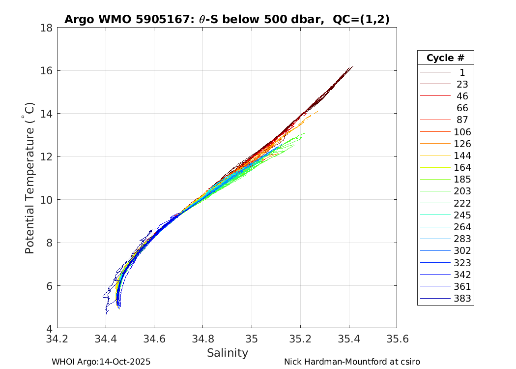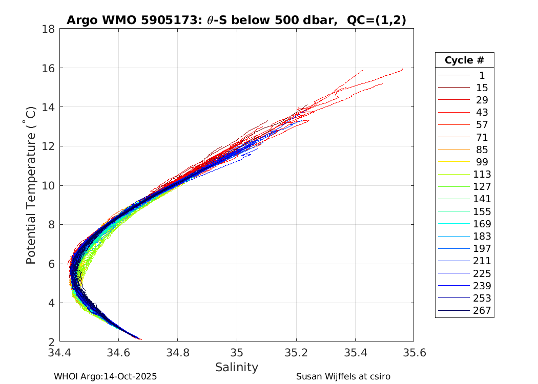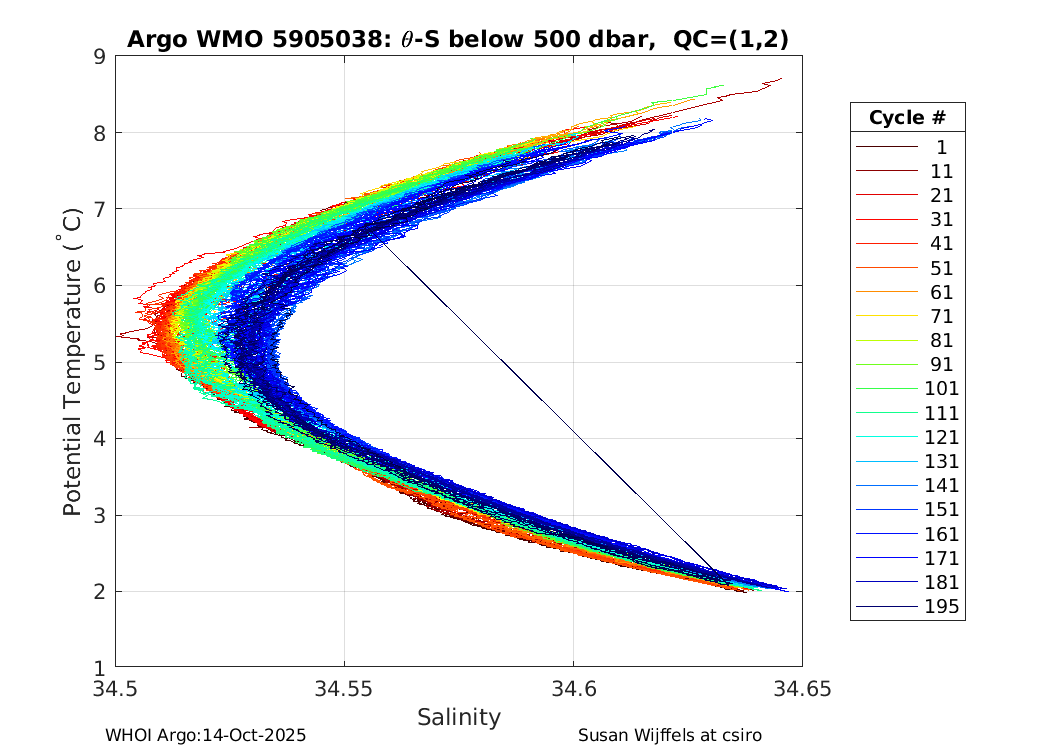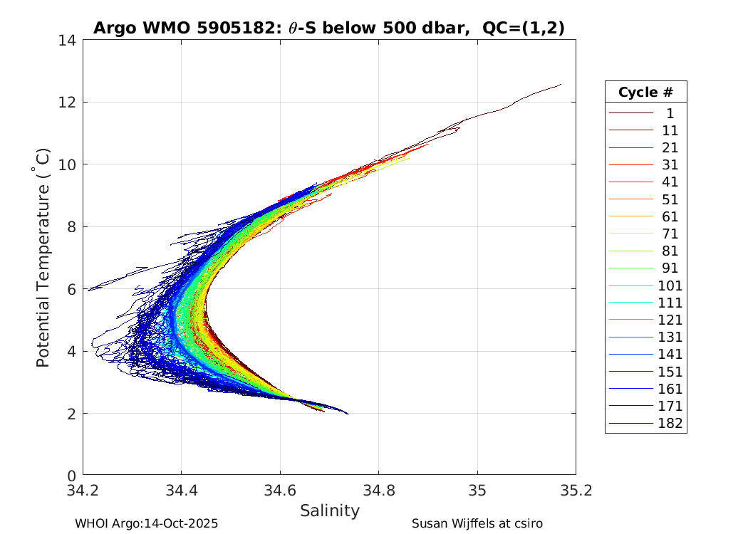 | WMO: #5905191 DAC: csiro PI: Susan Wijffels NAVIS_EBR: #763 SBE41CP_V7.2.5: #8633 DRUCK: #10300736 Altimeter Comparison (IFREMER) EuroArgo Link | ![]() |