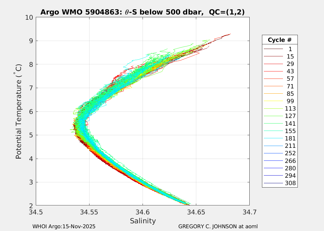 | WMO: #6902673 DAC: coriolis PI: Vincent ECHEVIN ARVOR: # FLOATCLOCK: # KISTLER_2900PSIA: #4632572 SBE41CP_V2: #7045 Altimeter Comparison (IFREMER) EuroArgo Link | ![]() |