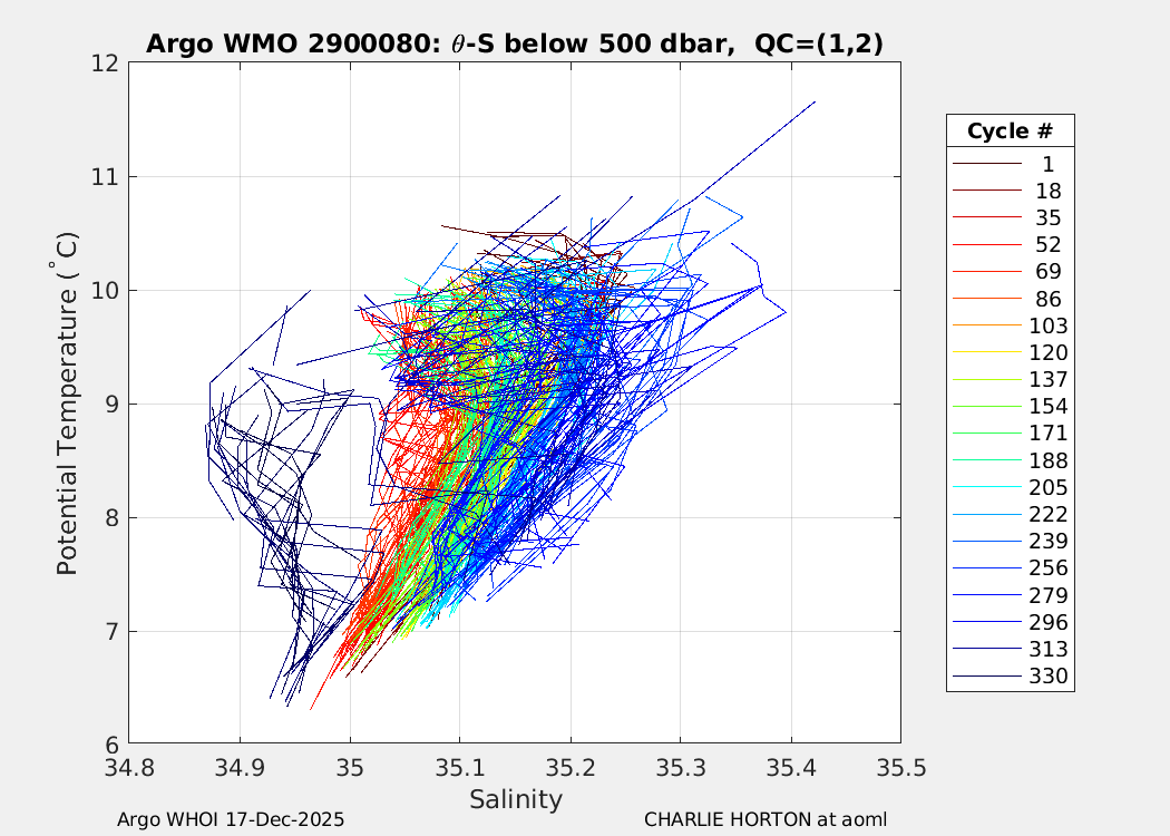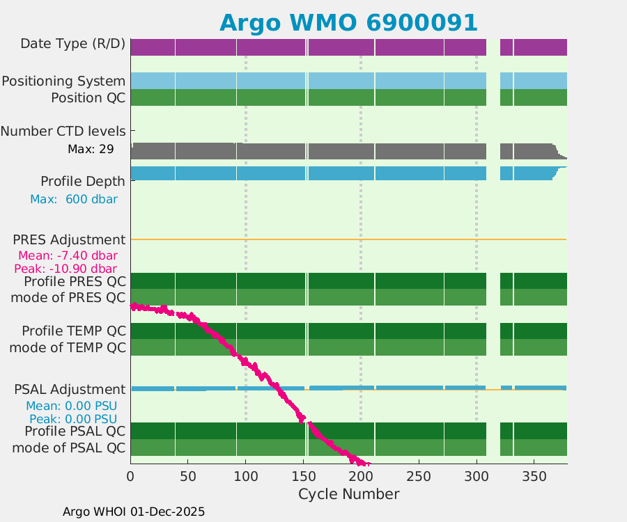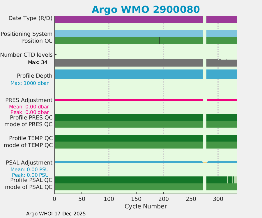 | WMO: #4900163 DAC: aoml PI: CATHERINE WOODY APEX: #779 SBE41: #543 DRUCK_2900PSIA: #2657717482 Altimeter Comparison (IFREMER) EuroArgo Link | ![]() |