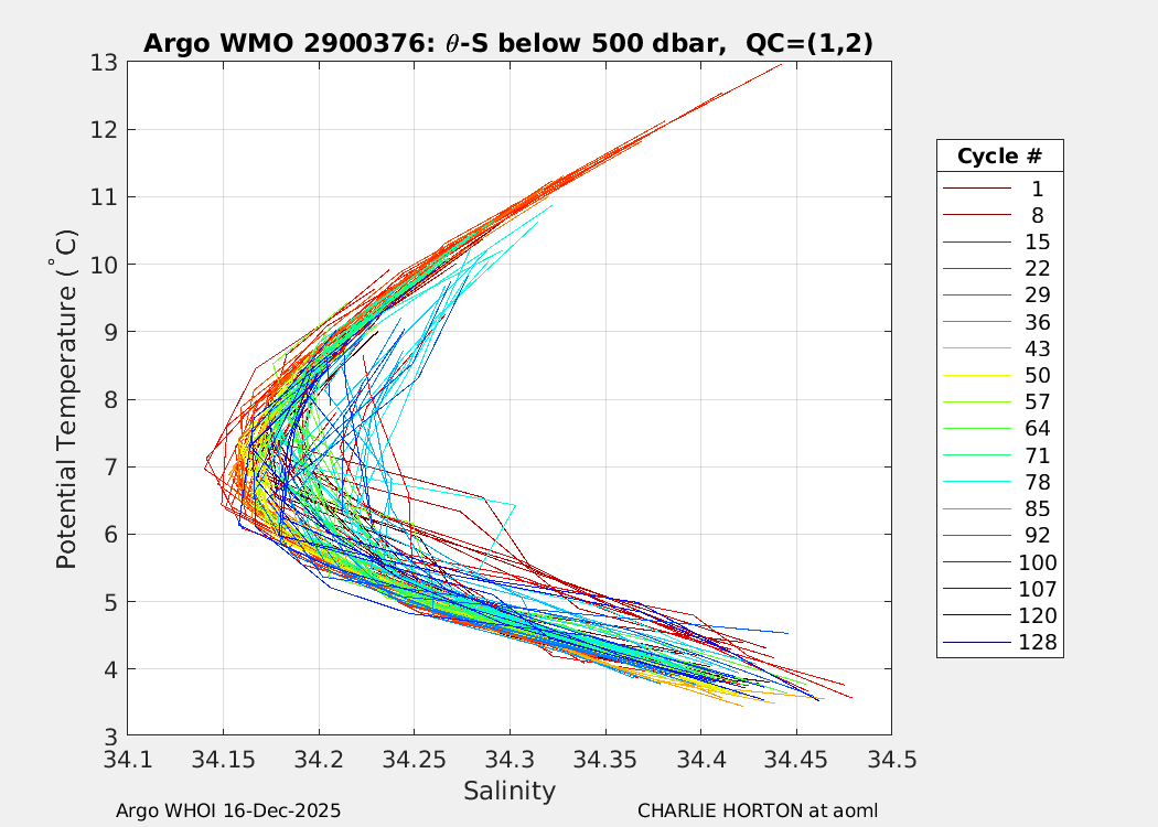 | WMO: #2900376 DAC: aoml PI: CHARLIE HORTON APEX: #1468 SBE41: #1490 Altimeter Comparison (IFREMER) EuroArgo Link | ![]() |