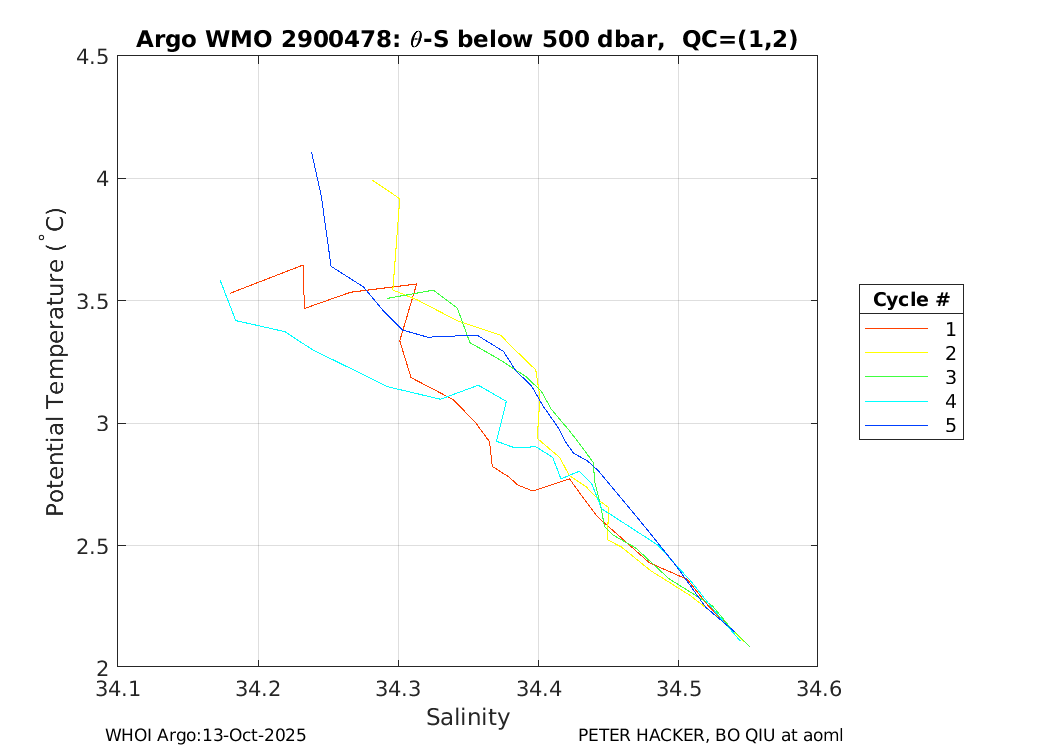 | WMO: #2900474 DAC: aoml PI: PETER HACKER, BO QIU APEX: #2372 SBE41: #2181 DRUCK_2900PSIA: #7731 Altimeter Comparison (IFREMER) EuroArgo Link | ![]() |