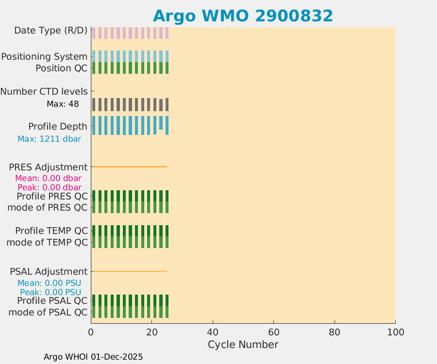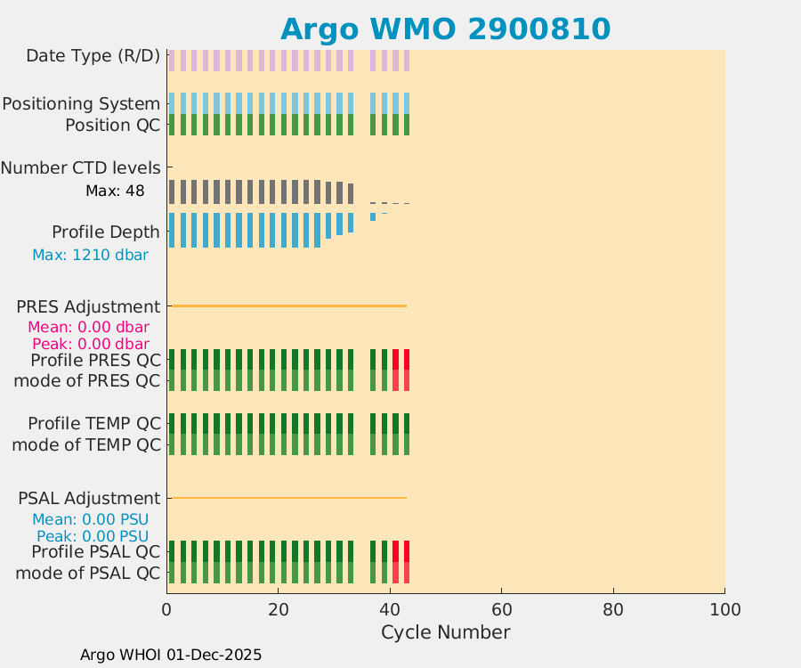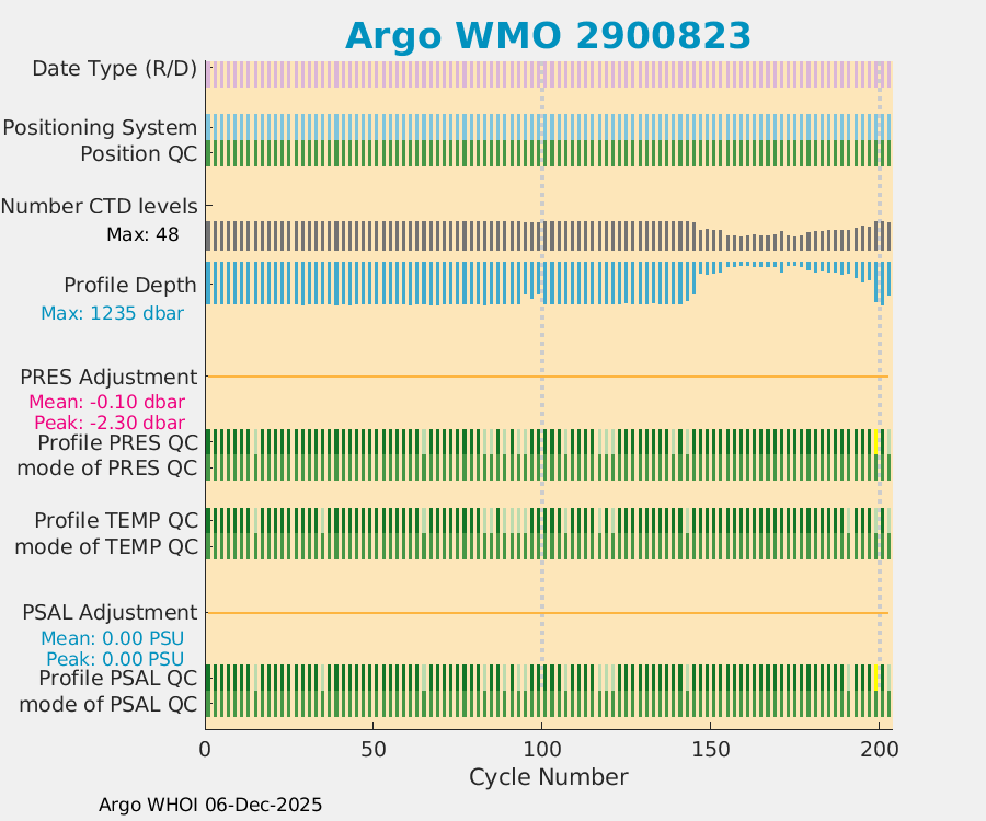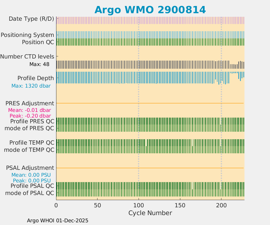 | WMO: #2901113 DAC: aoml PI: DR. CHARLIE HORTON APEX: #3294 SBE41: #3374 Altimeter Comparison (IFREMER) EuroArgo Link | ![]() |