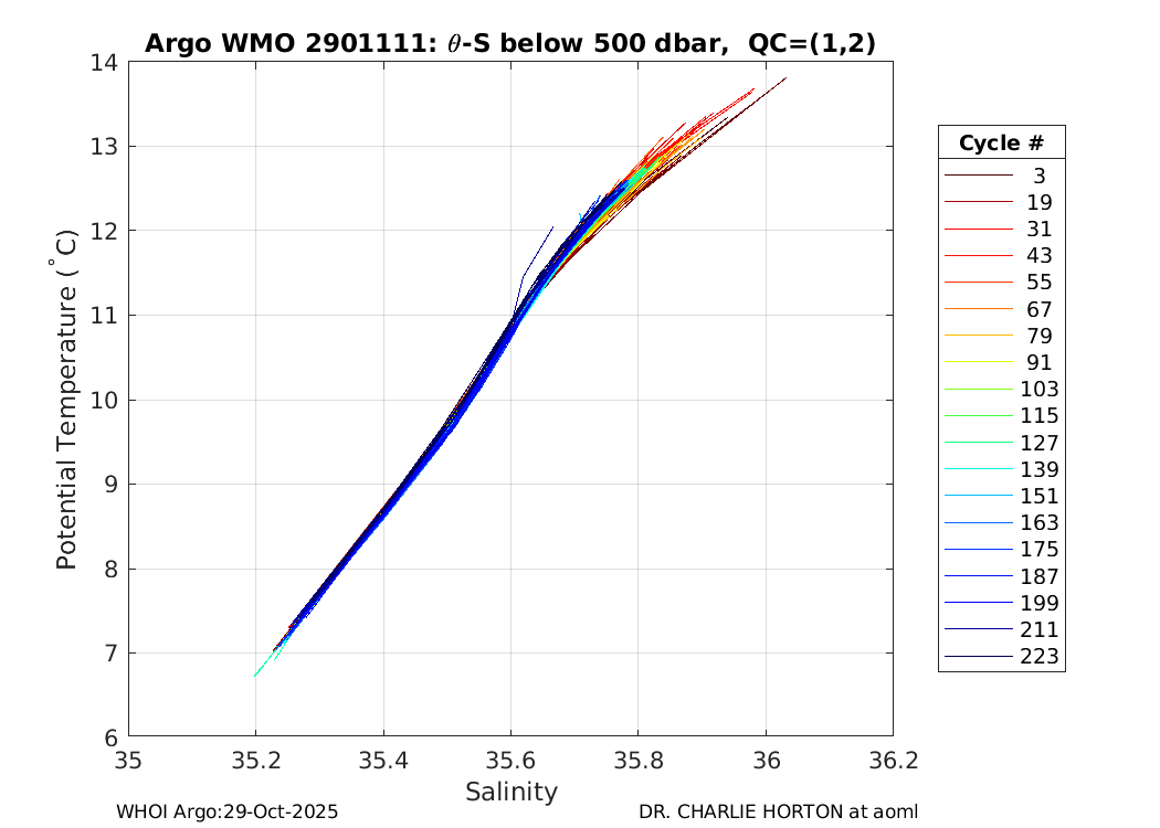| WMO: #2901117 DAC: aoml PI: DR. CHARLIE HORTON APEX: #4120 SBE41: #4169 Altimeter Comparison (IFREMER) EuroArgo Link | ![]() |