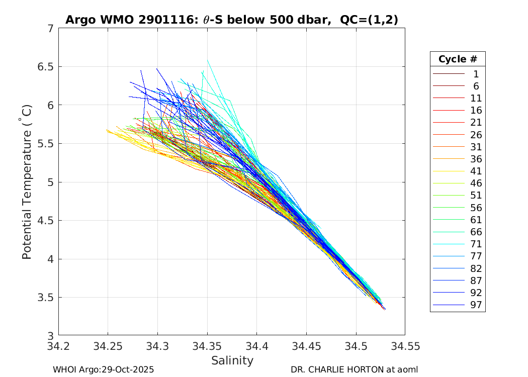 | WMO: #2901116 DAC: aoml PI: DR. CHARLIE HORTON APEX: #4119 SBE41: #4107 Altimeter Comparison (IFREMER) EuroArgo Link | ![]() |