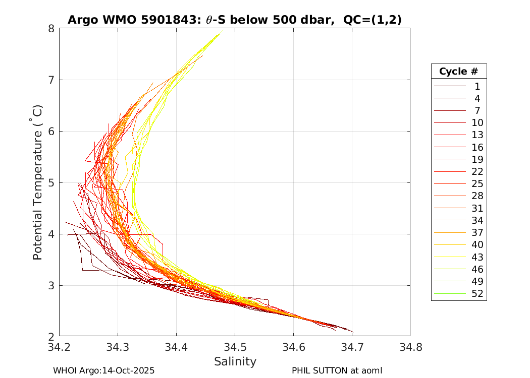 | WMO: #5901843 DAC: aoml PI: PHIL SUTTON SOLO: #2739 DRUCK_2900PSIA: #2476865 SBE41CP_V2: #1918 Altimeter Comparison (IFREMER) EuroArgo Link | ![]() |