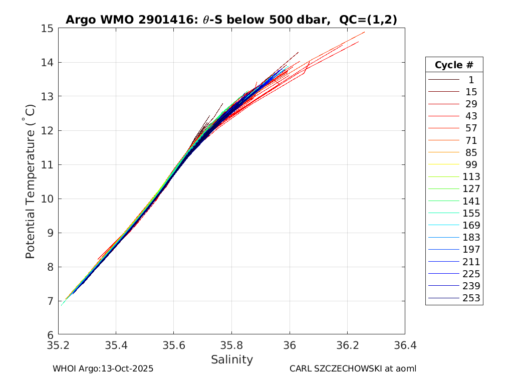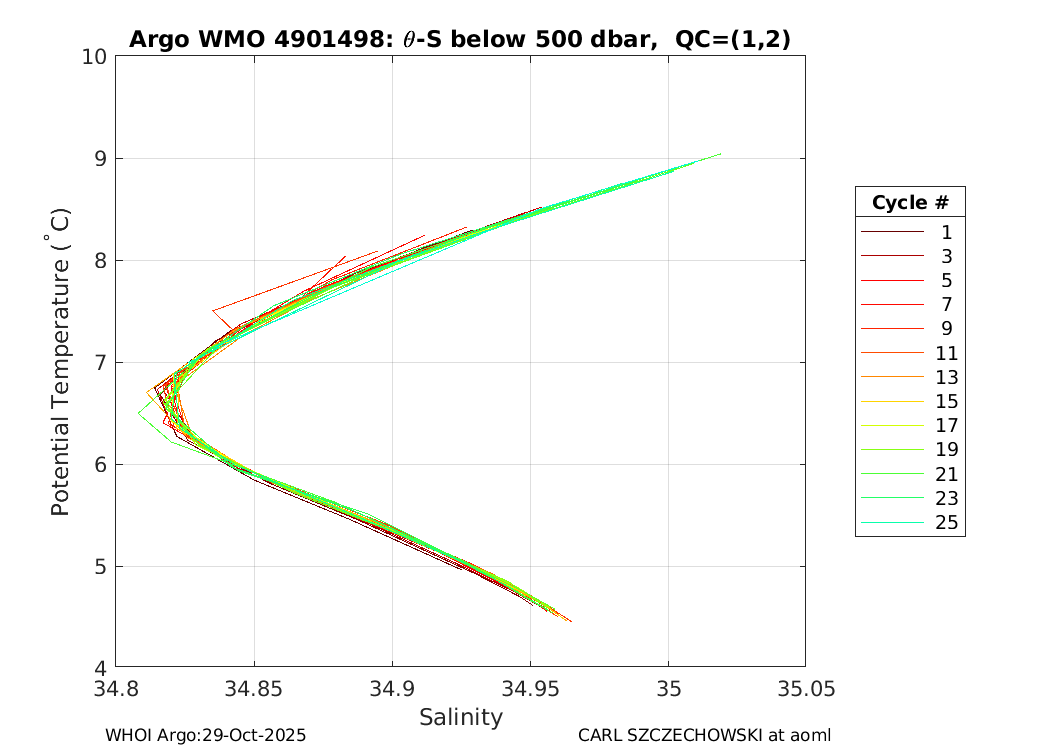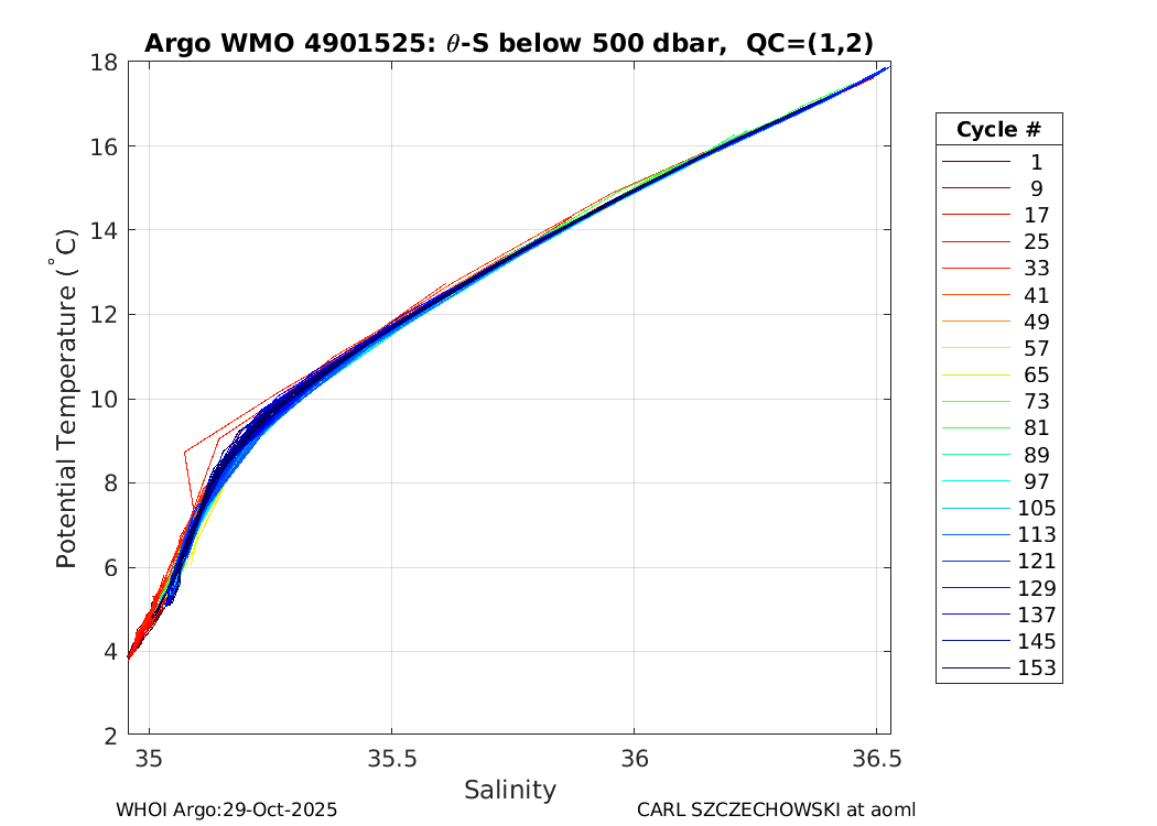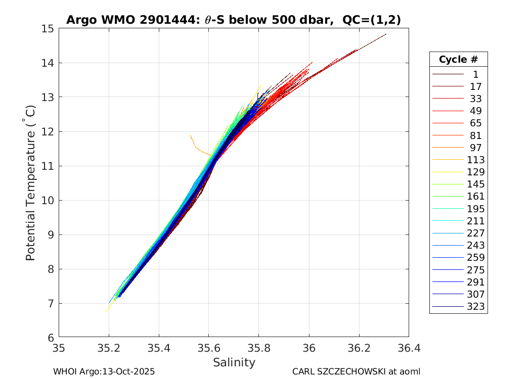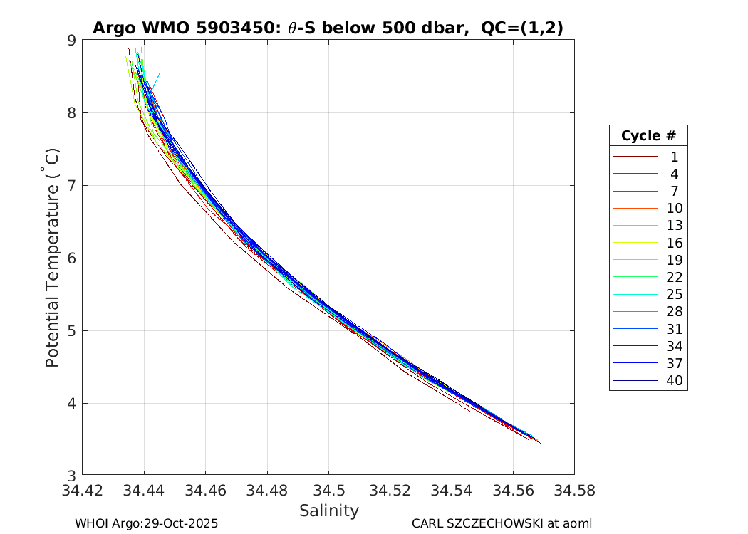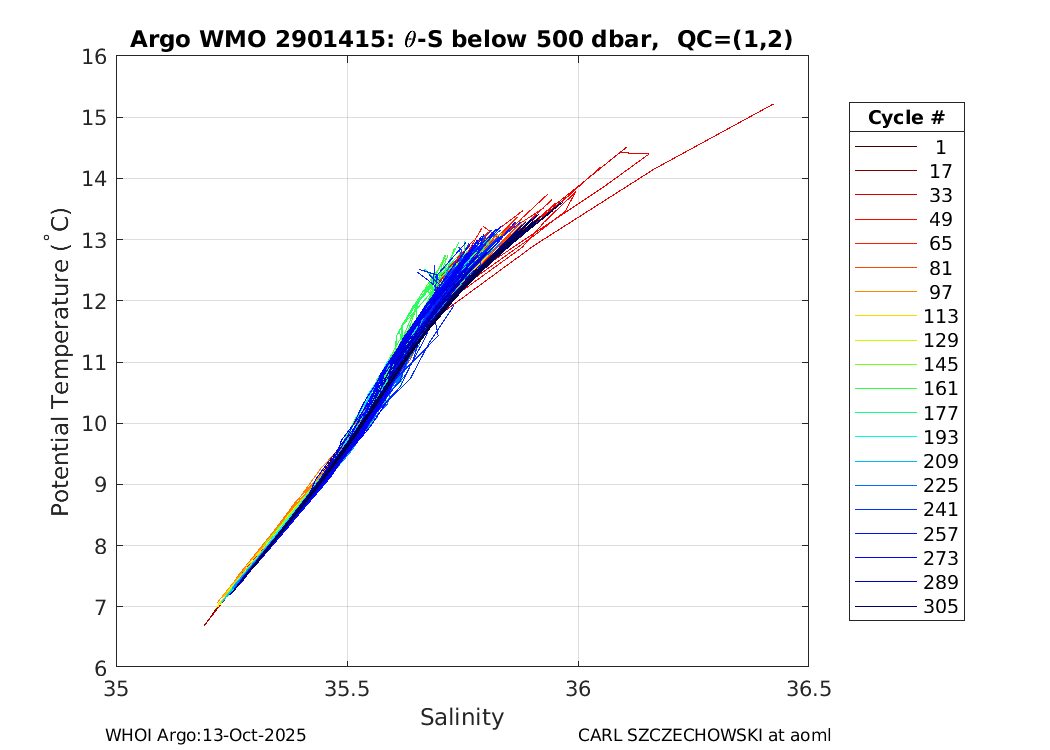 | WMO: #2901445 DAC: aoml PI: CARL SZCZECHOWSKI APEX: #5708 SBE41: #5540 Altimeter Comparison (IFREMER) EuroArgo Link | ![]() |
