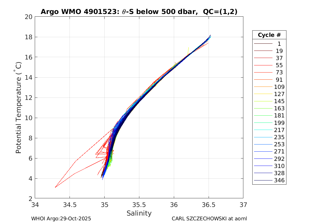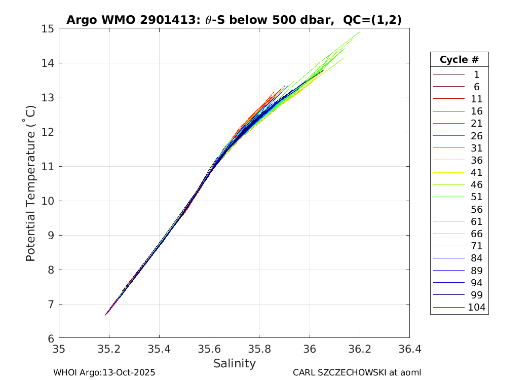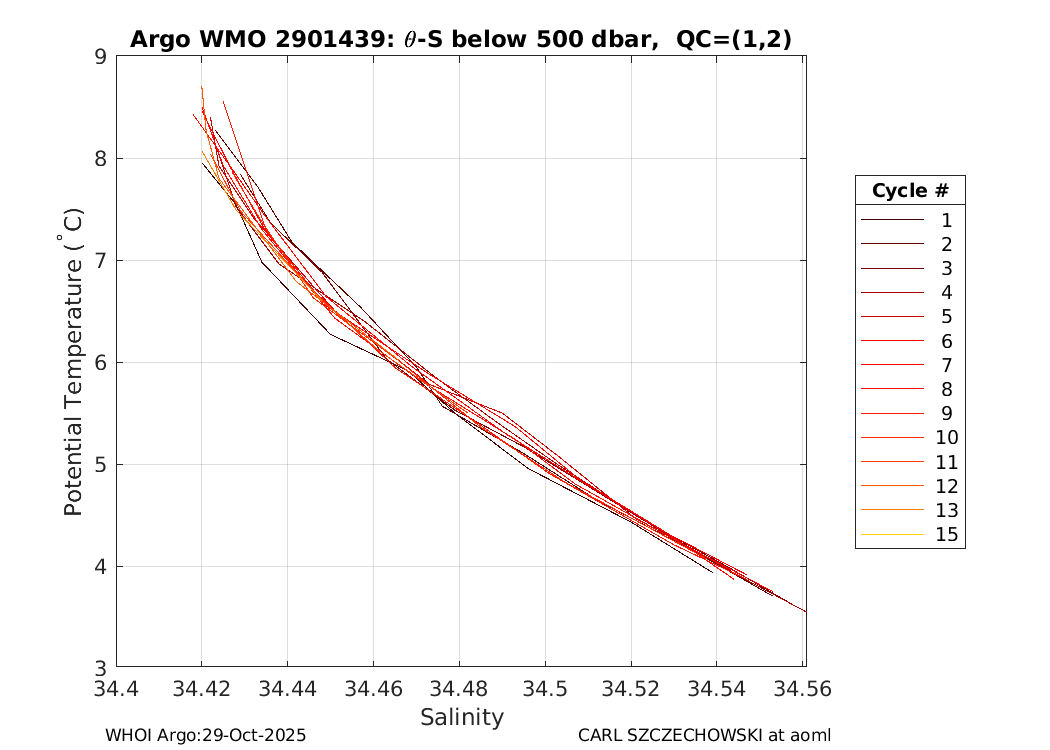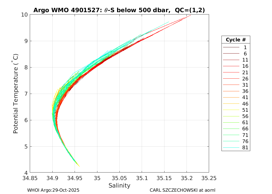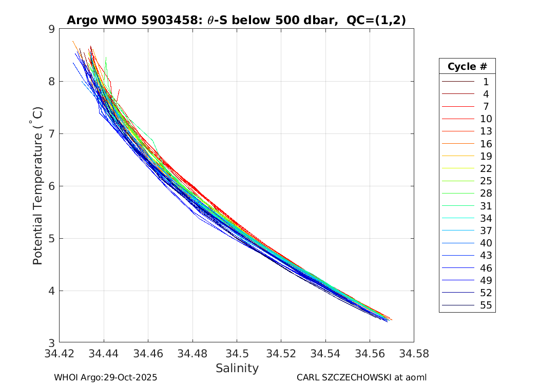 | WMO: #2901445 DAC: aoml PI: CARL SZCZECHOWSKI APEX: #5708 SBE41: #5540 Altimeter Comparison (IFREMER) EuroArgo Link | ![]() |