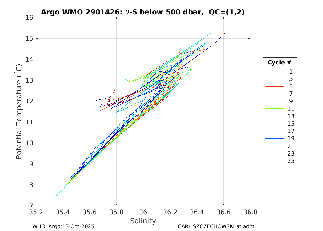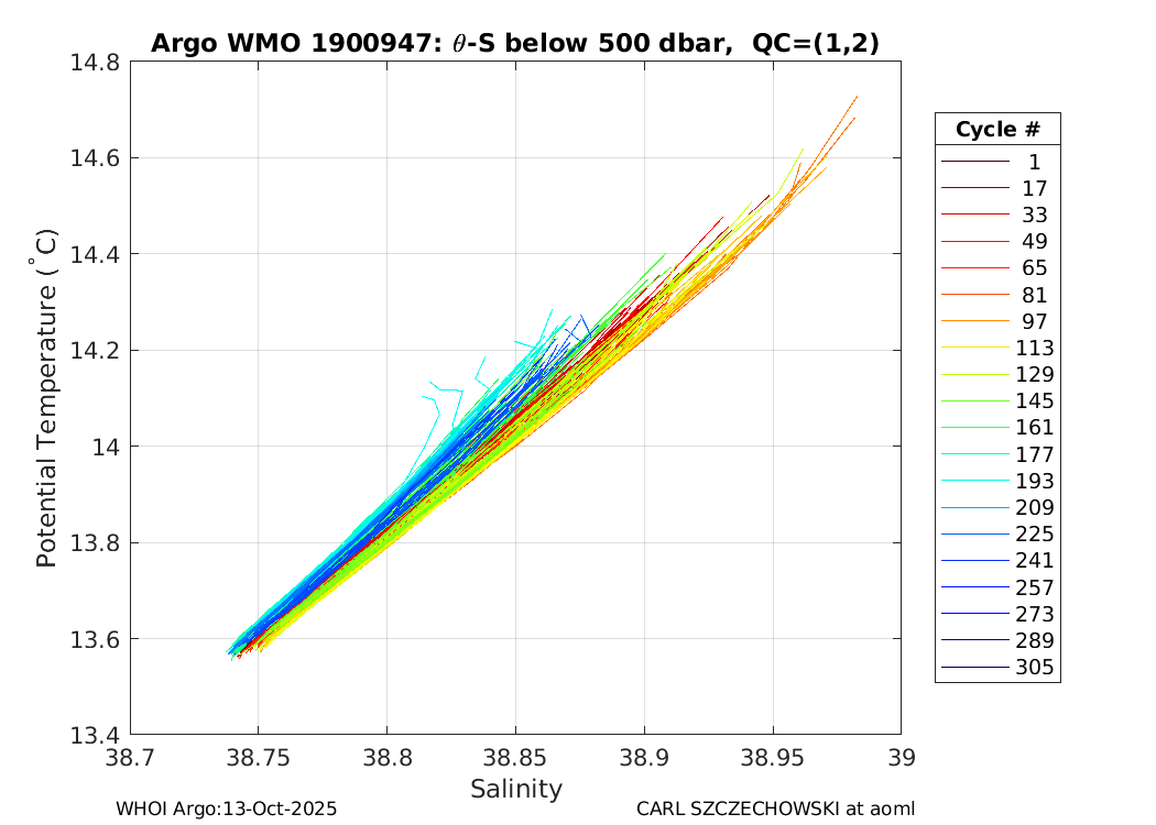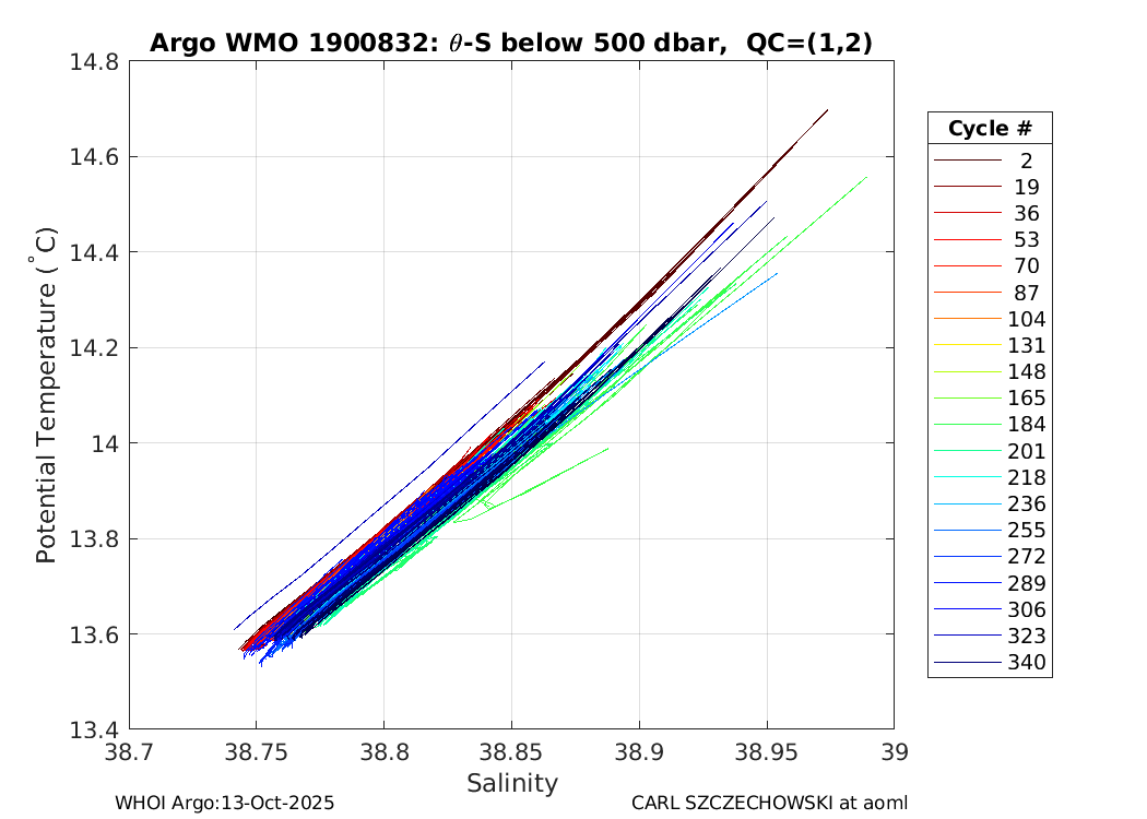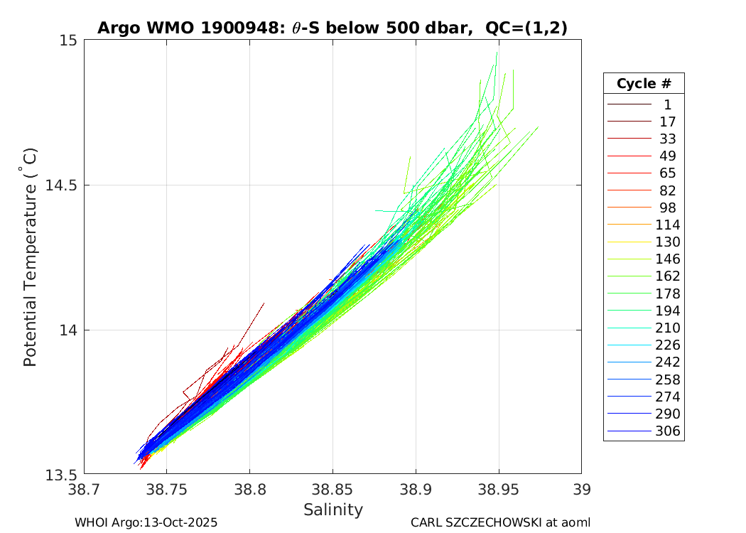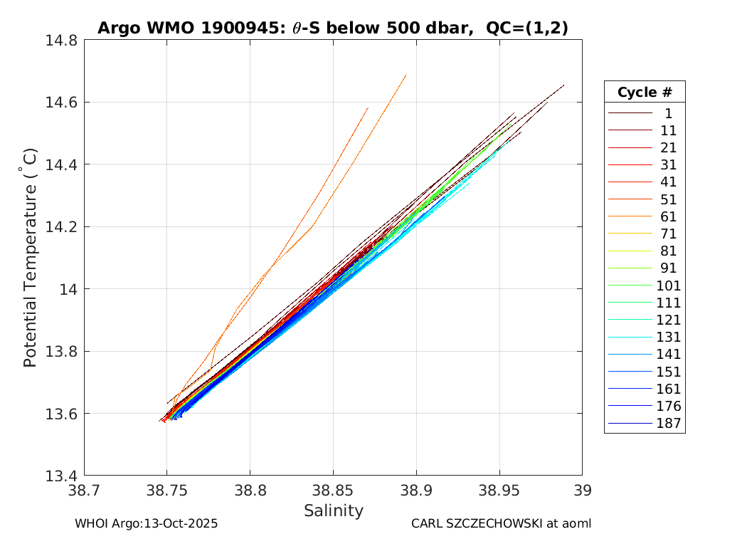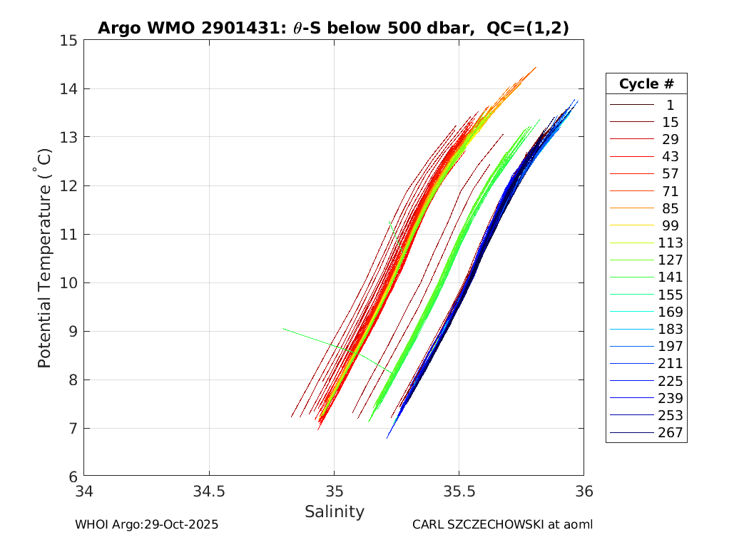 | WMO: #2901445 DAC: aoml PI: CARL SZCZECHOWSKI APEX: #5708 SBE41: #5540 Altimeter Comparison (IFREMER) EuroArgo Link | ![]() |